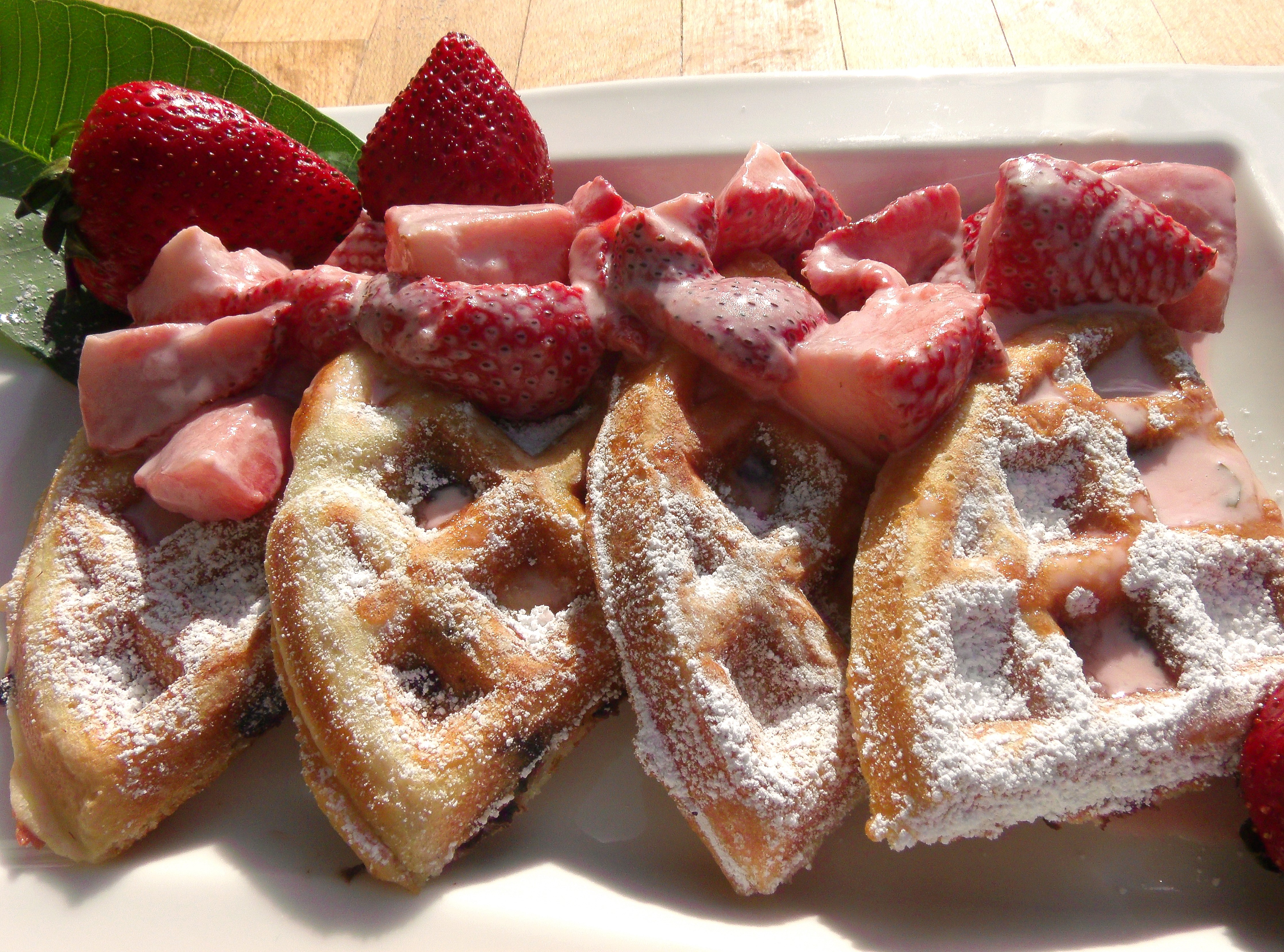 14c ← Previous Next → BREAKFAST OF CHAMPIONS # 61 – Chocolate Waffles With Strawberries In Honey And Vanilla Cream