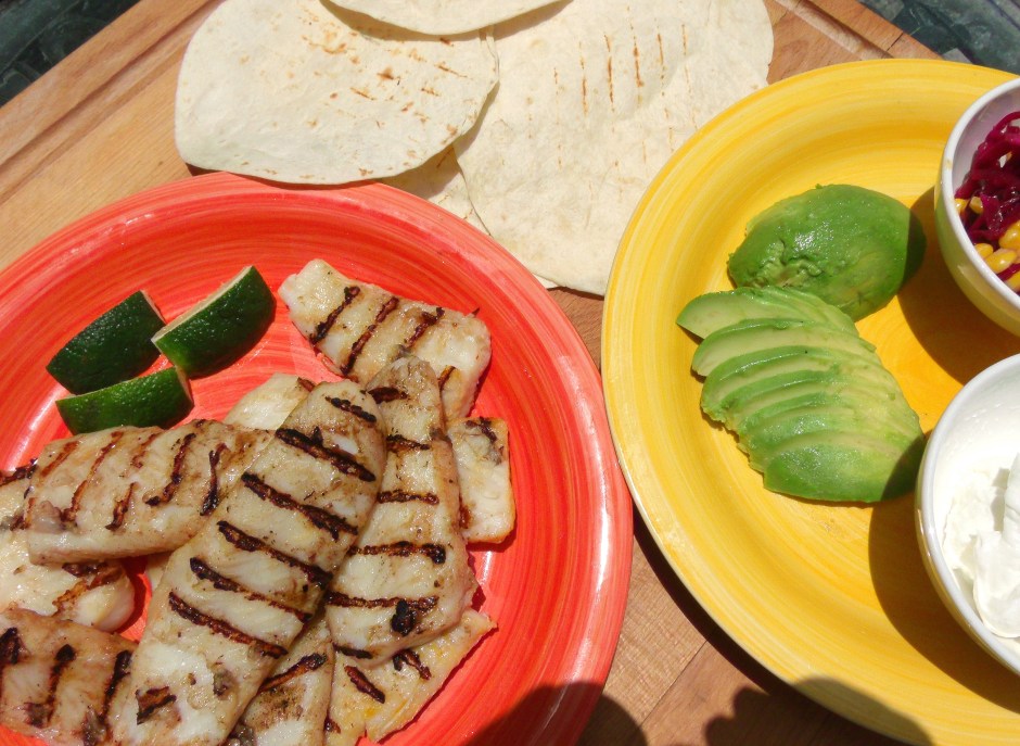 Tacos De Pescado (Grilled Fish Tacos) ← Previous Next → tortillas, grilled cod, sour cream, sliced avocado, lime