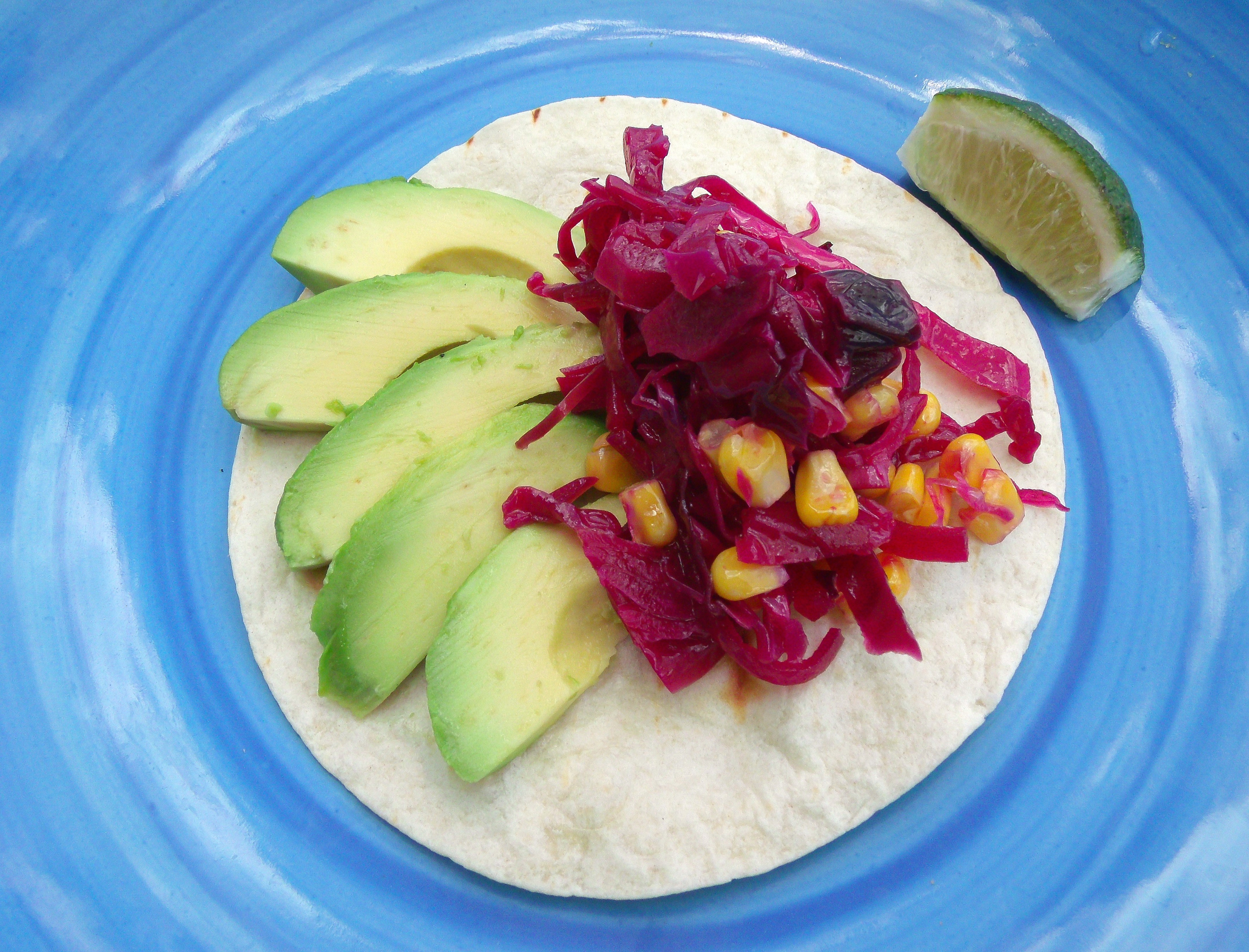 top tortilla with avocado and slaw