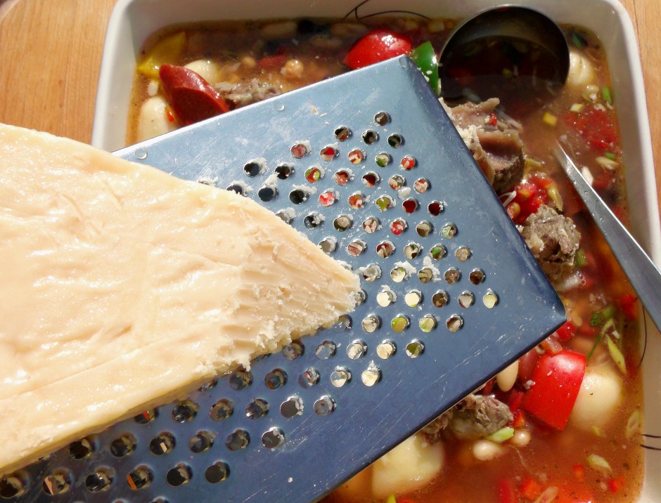 Crappy Weather Food – Beef, Beans And Other Stuff ← Previous Next → to serve, sprinkle with fresh grated Asiago cheese and 1/2 cup finely diced raw white onion, red pepper, green pepper, yellow pepper and scallion (optional, but in my opinion the raw veggies add a great “freshness” and texture)