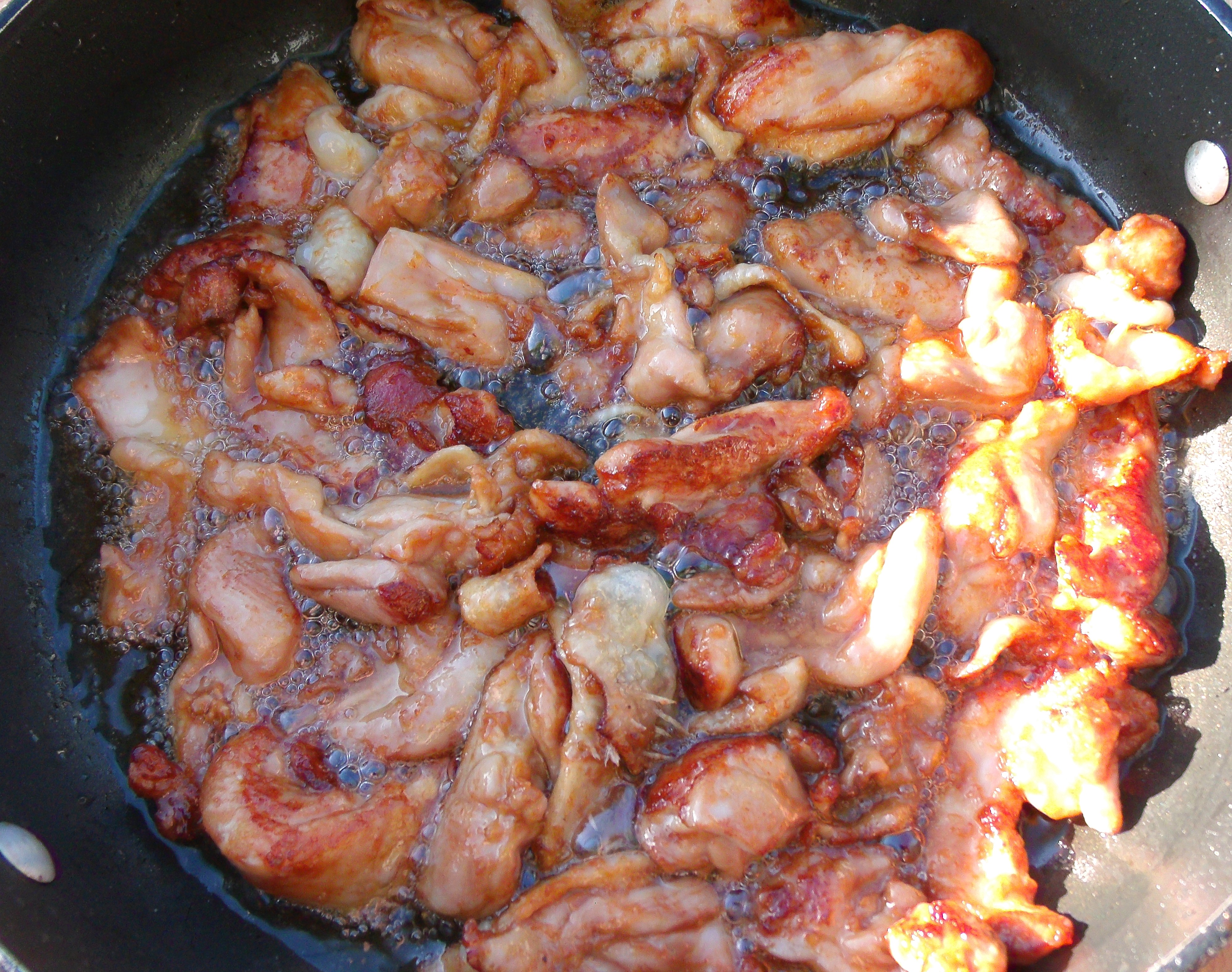 Stir Fried Chicken And Vegetables ← Previous Next → saute chicken in 1/3 cup peanut oil until cooked half-way done