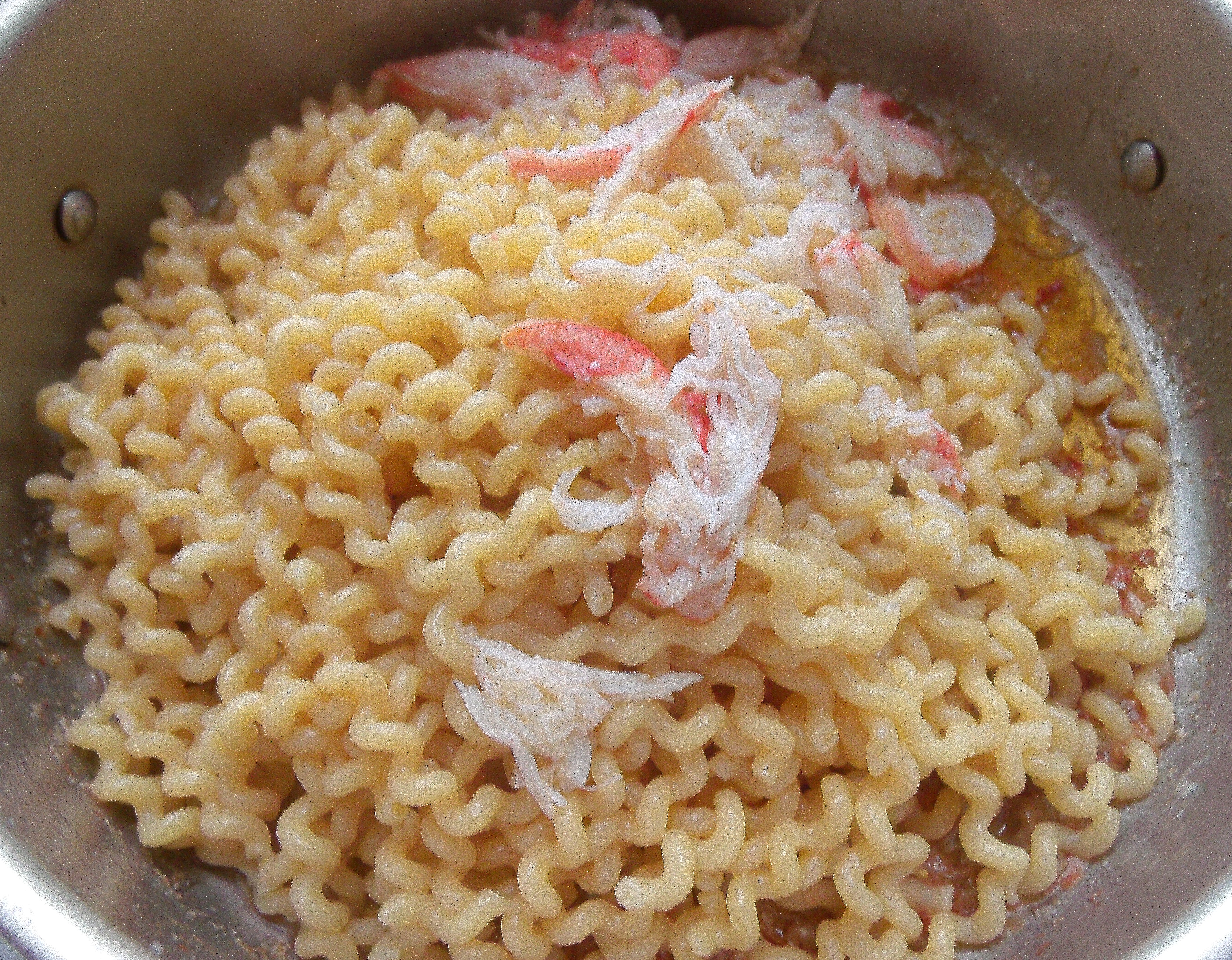 Snow Crab And Fusilli Lunghi In Anchovy Butter ← Previous Next → add 1/4 lb fusilli lunghi, season with kosher salt to taste, mix, check/adjust seasoning; serve garnished with the pieces of crap and finely sliced scallions
