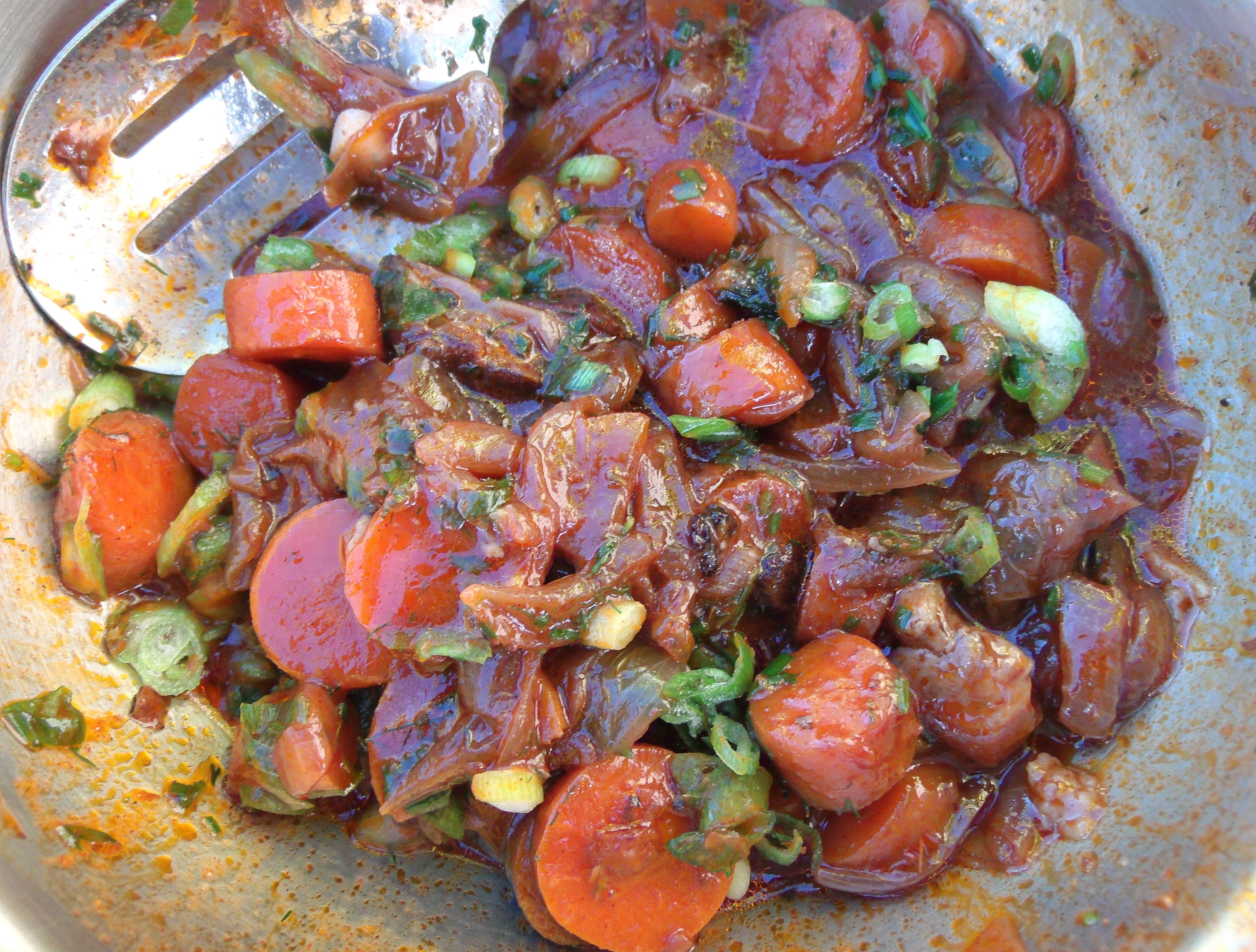 Sliced Beef Shanks Braised In Merlot ← Previous Next → mix 1 tblsp sliced scallions and 1 tsp cilantro with the vegetables