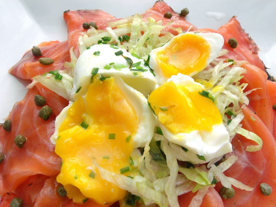 Rösti-Waffles, Gravlax And Poached Eggle with capers and finely sliced chives