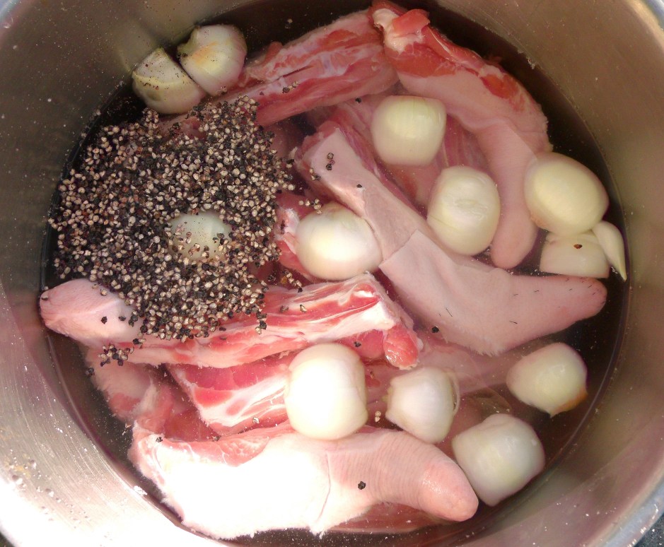 Confession Of An PT Addict ← Previous Next → rinse the tails overnight, simmer in fresh water, fresh-ground black pepper and onions until tender, usually between 2 and 3 hours; after one hour, check the water – if it is salty, drain and add new water, if needed, repeat