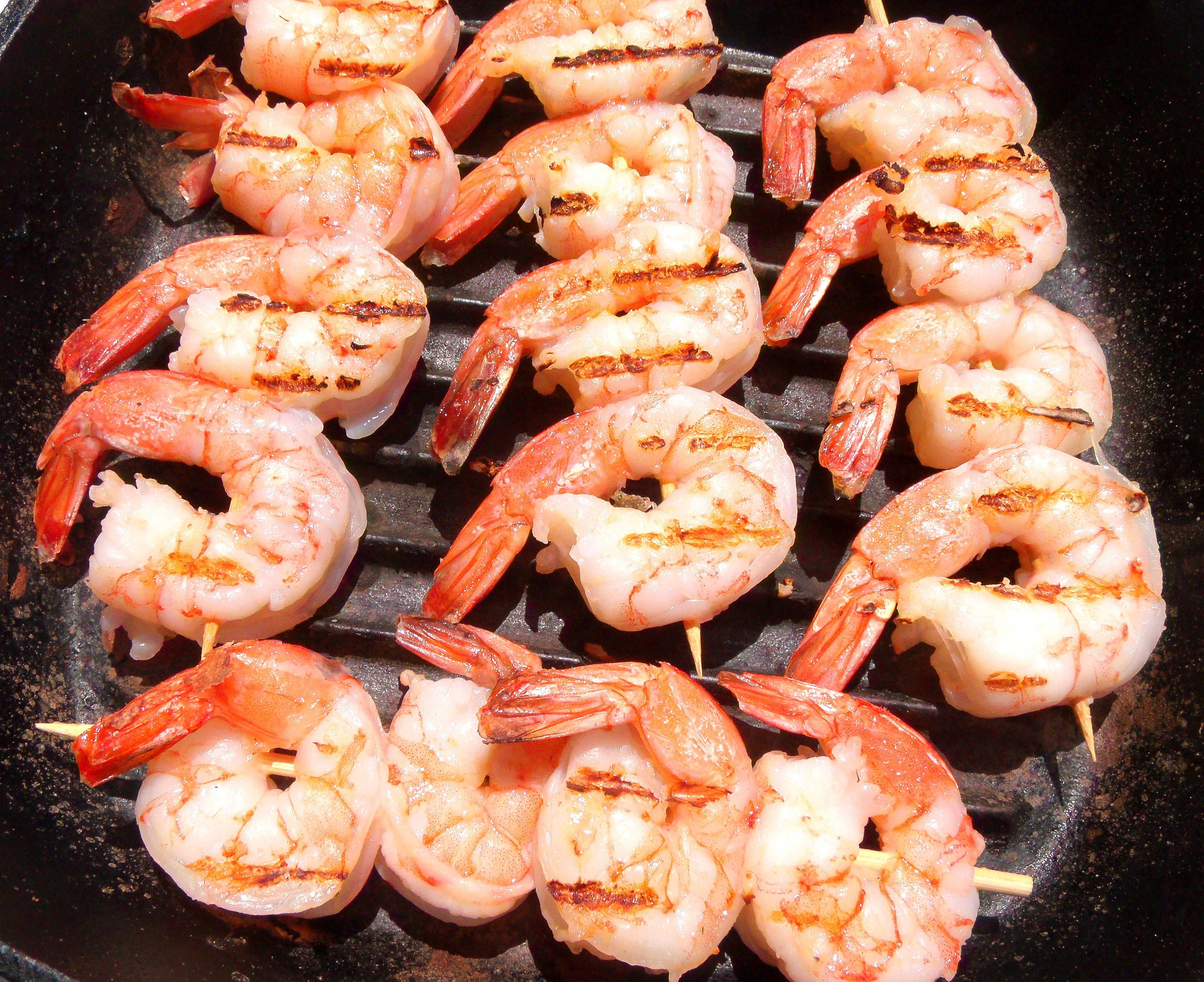 season shrimp brochettes with kosher salt, cayenne pepper and lime juice to taste, grill on both sides on high heat until just cooked through, serve at once