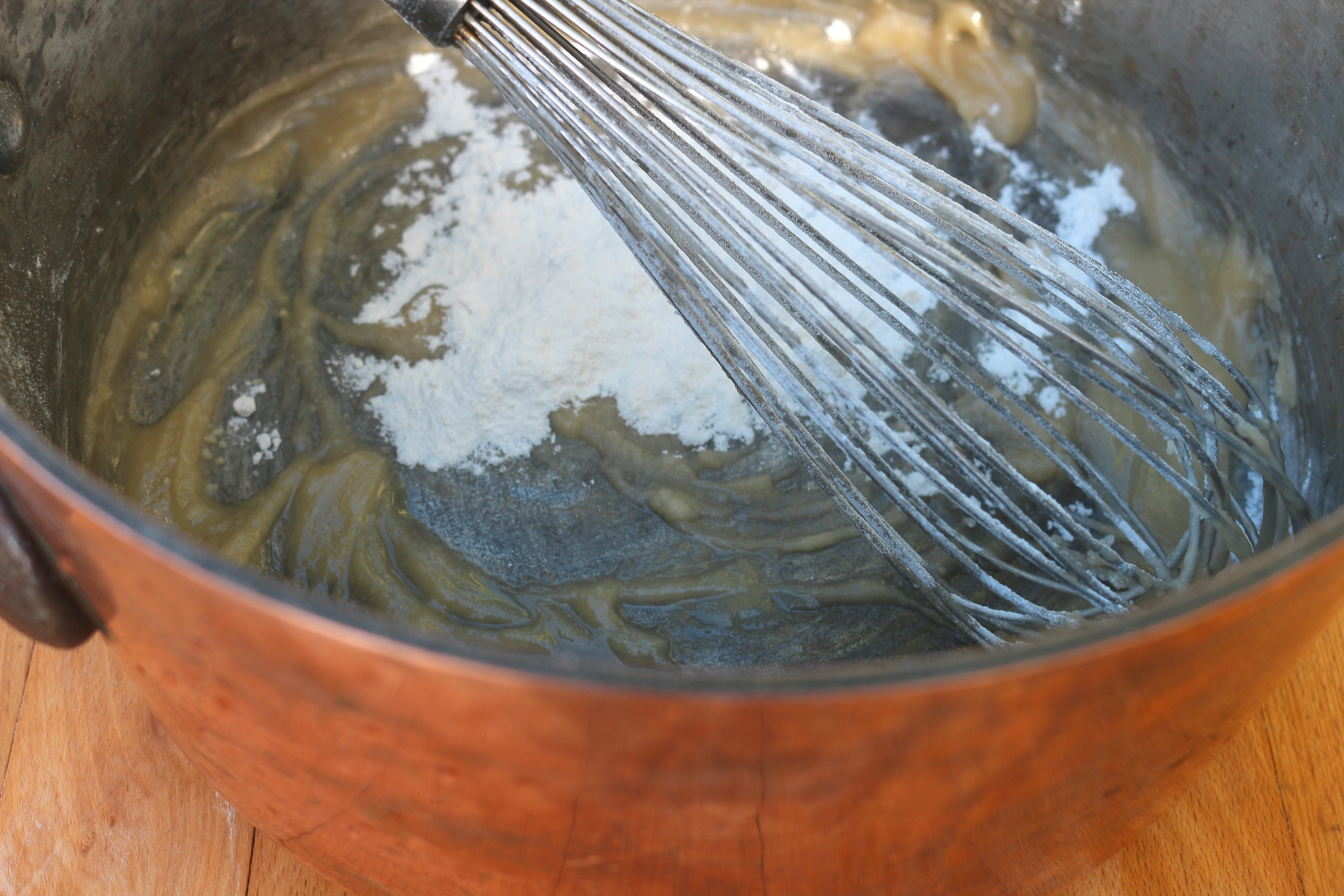 make a blond roux ( 1 ea tblsp butter, 1 ea tblsp a/p flour)