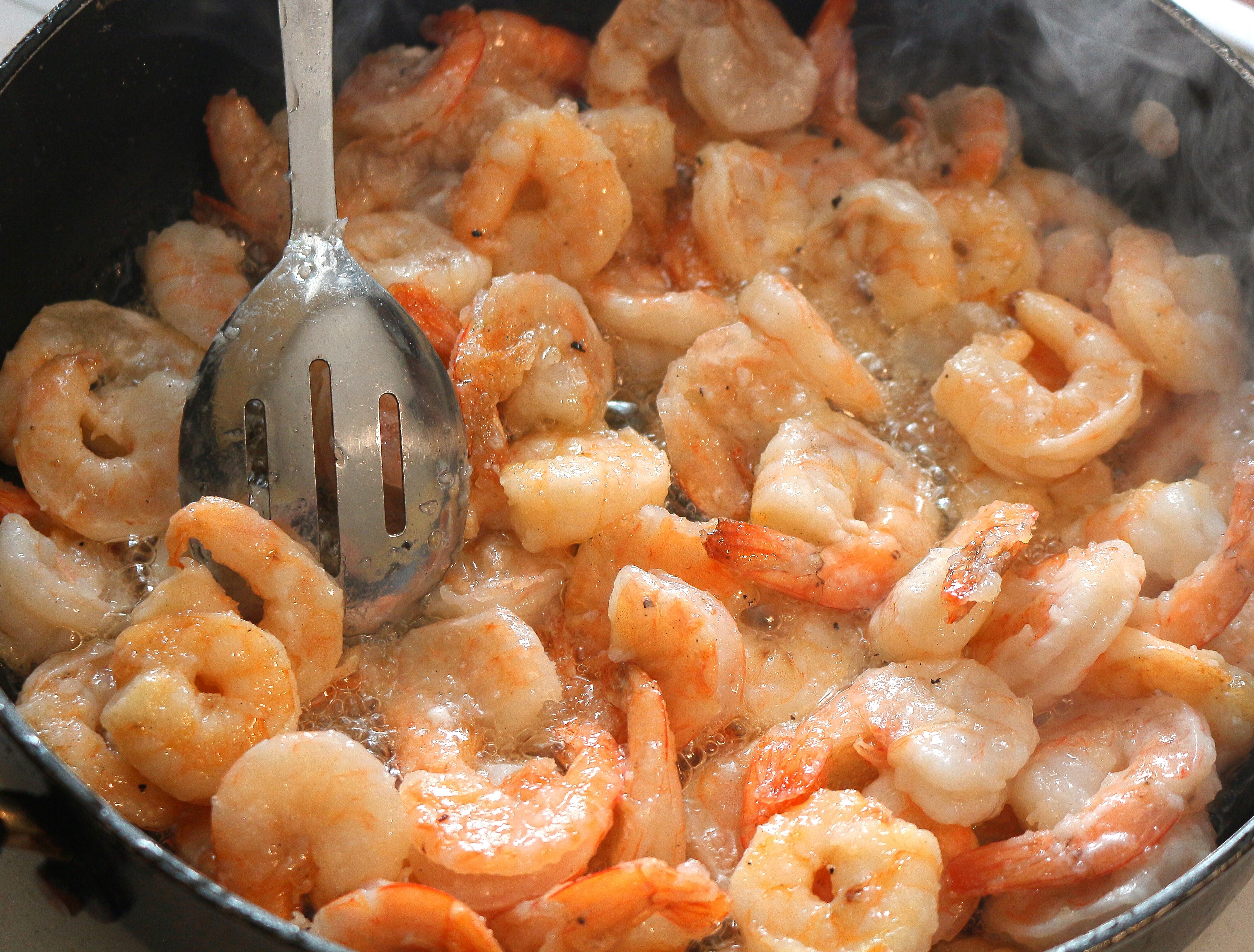 Curried Shrimp With Potatoes & Garbanzos ← Previous Next → fry in 375F peanut oil for 1 minute, remove with a slotted spoon, reserve