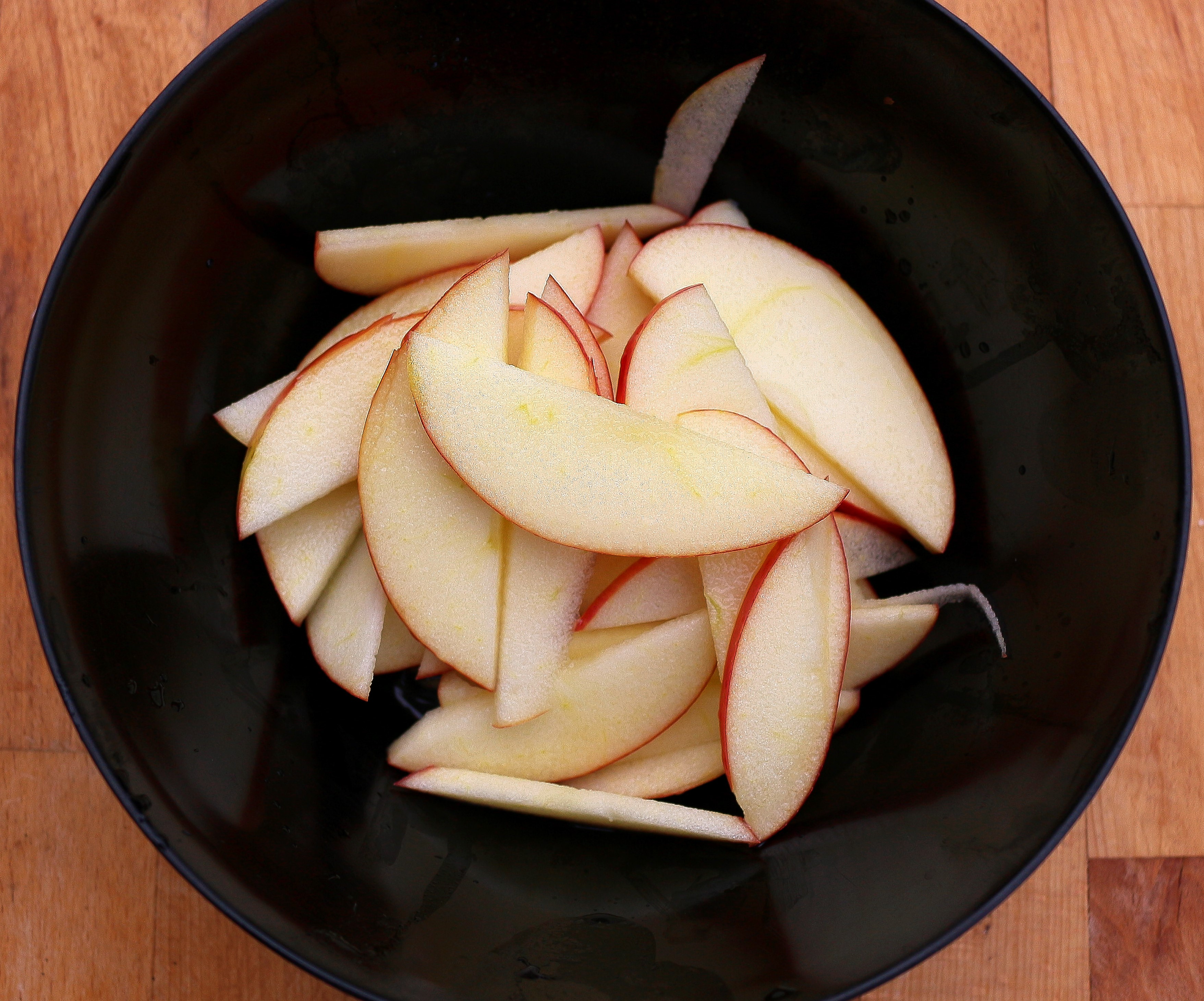 cut the apple around the core into fine slices