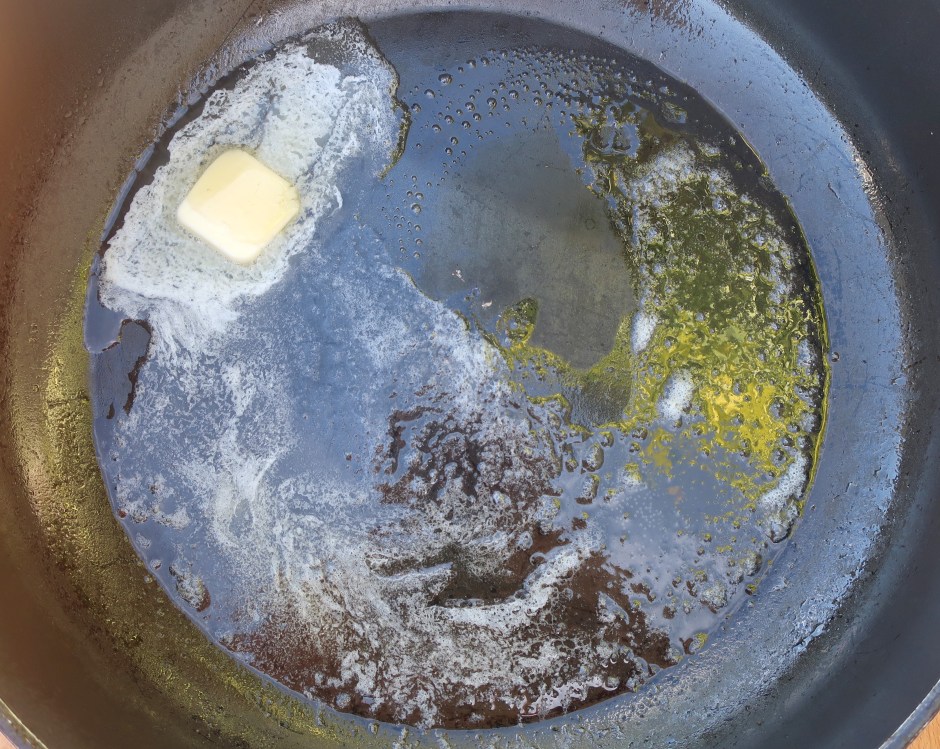 Vanilla Crepes With Caramelized Blackberries & Pomegranate Seeds Next → melt 2 oz whole butter, add 2 tblsp sugar, cook until sugar starts to caramelize, add 2 tblsp honey