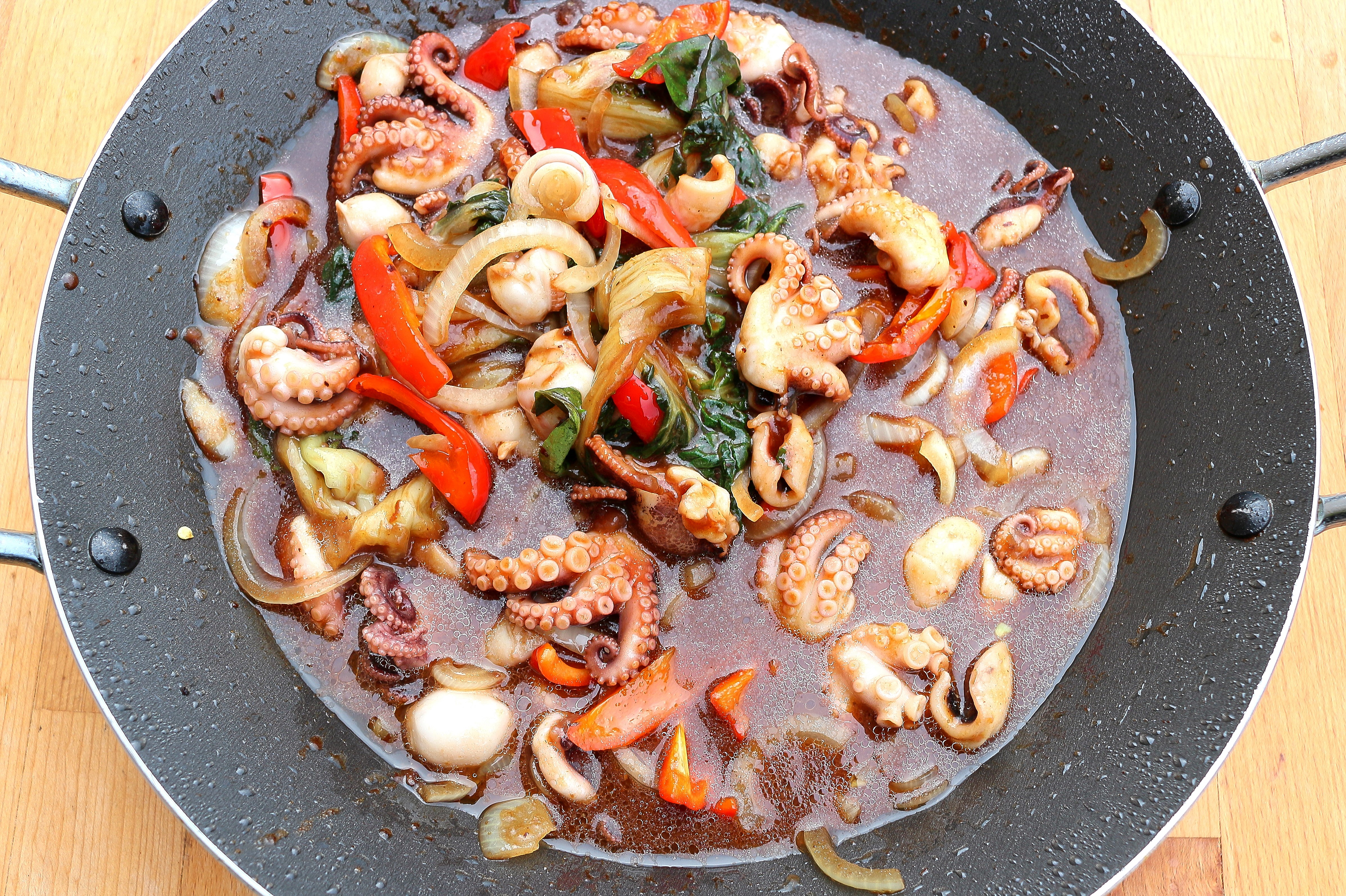 Baby Octopus In Black Bean/Oyster Sauce On A Crisp Egg Noodle Pillow ← Previous Next → check/adjust the flavor