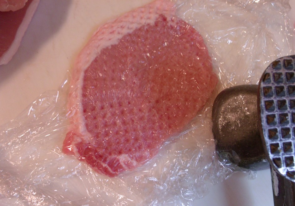 Schnitzel vom Schweinerücken „Zigeuner Art“ ← Previous Next → pound the cutlets between plastic film into thin schnitzel, season with kosher salt and cayenne pepper, dredge in a/p flour