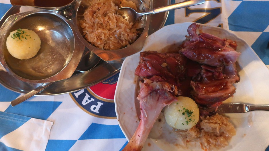 schweinehaxe mit sauerkraut und kartoffelknoedel