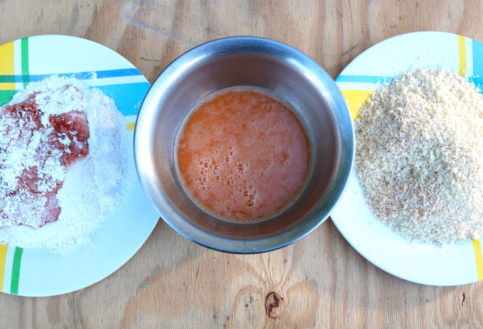 4 ← Previous Next → bread the cutlets in a/p flour, whisked eggs and panko, season all three items with salt and pepper