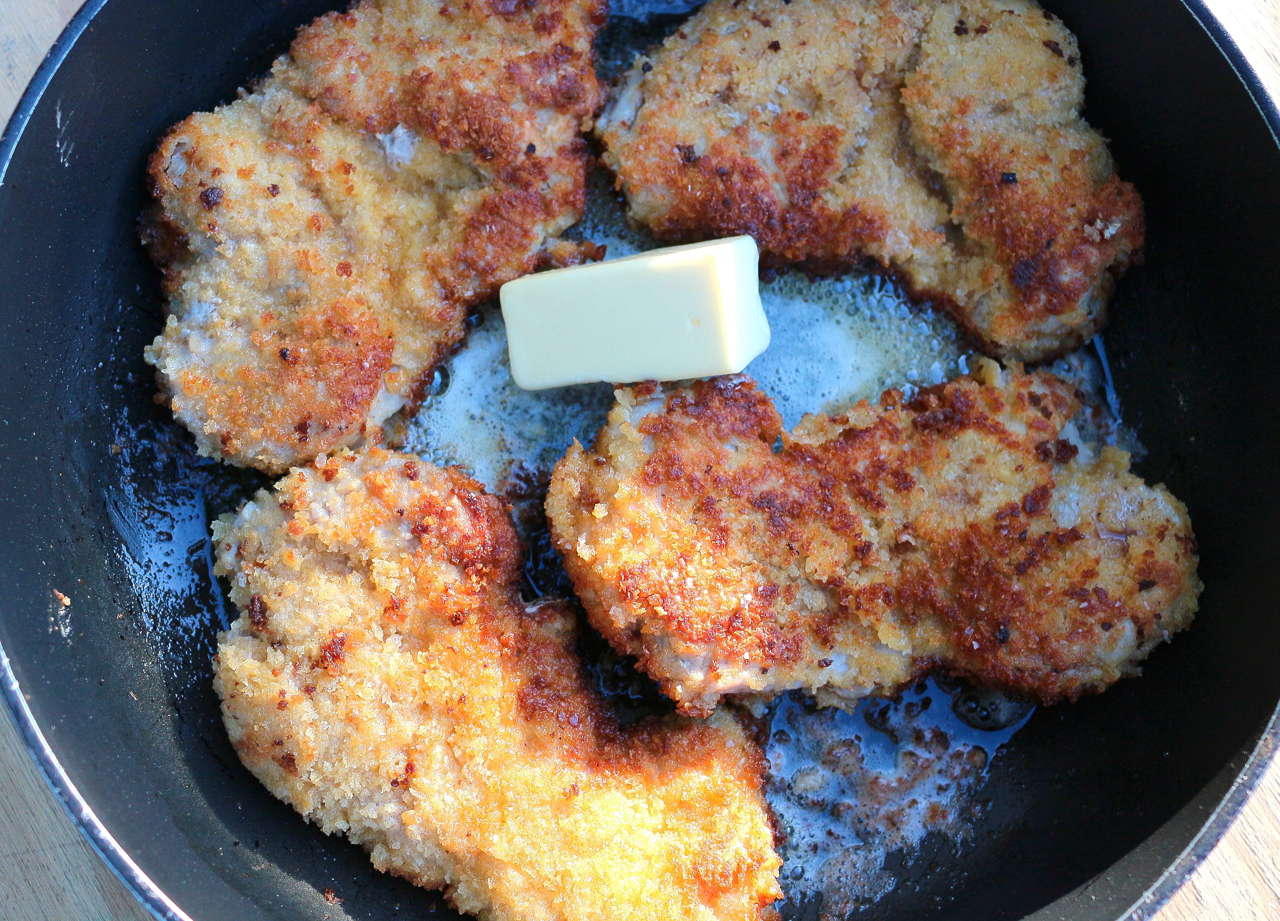 Tonkatsu With Cilantro/Pomegranate Rice ← Previous Next → cook until golden on both sides, when almost cooked through, add 1/2 stick butter, finish cooking on bothe sides