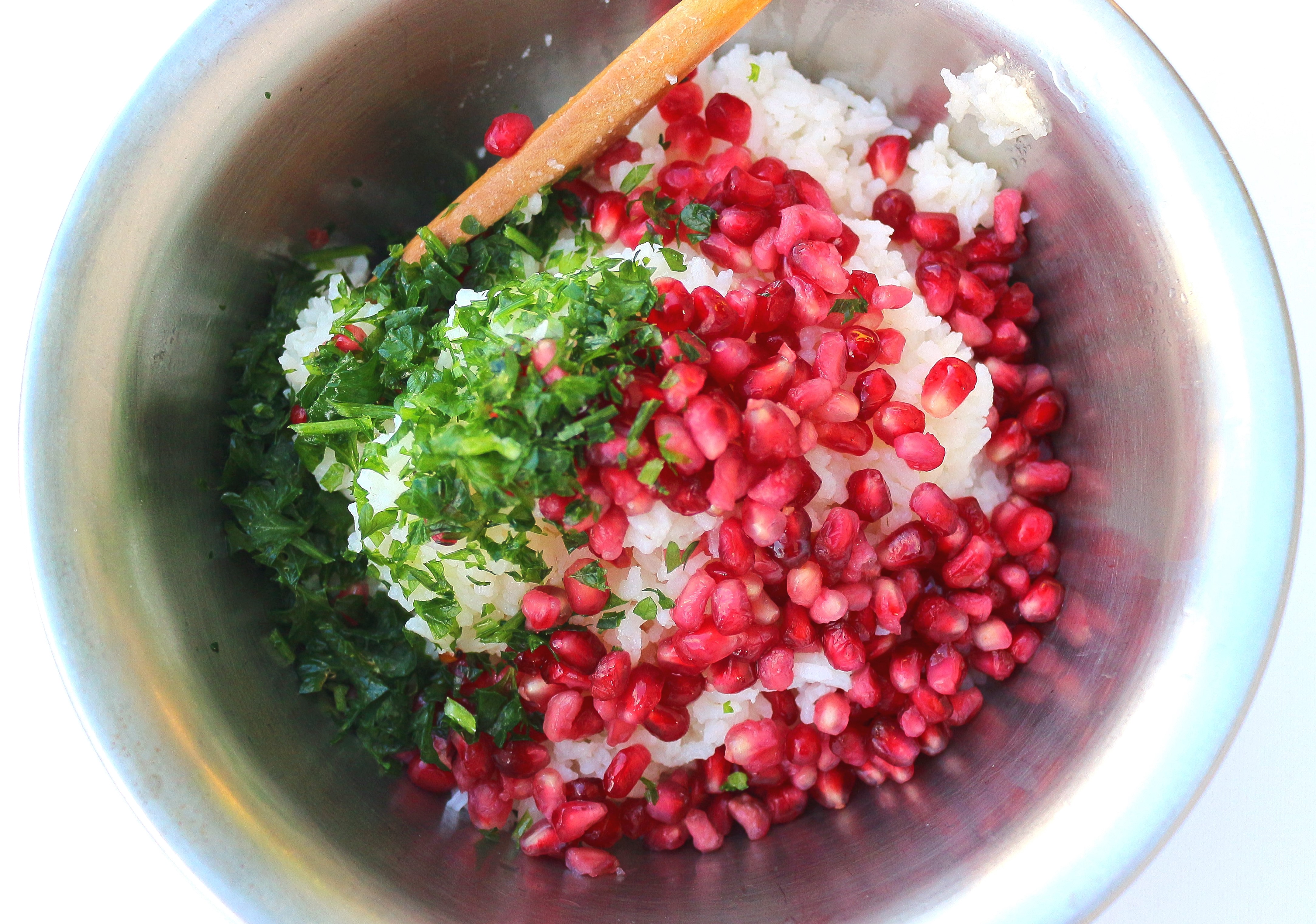 Tonkatsu With Cilantro/Pomegranate Rice ← Previous Next → while the tonkatsu are cooking, mix 4 cups freshly steamed rice with 4 oz butter, 4 tblsp chopped cilantro and 8 oz pomegranate seeds, mix carefully as not to mash-up the rice or the seeds