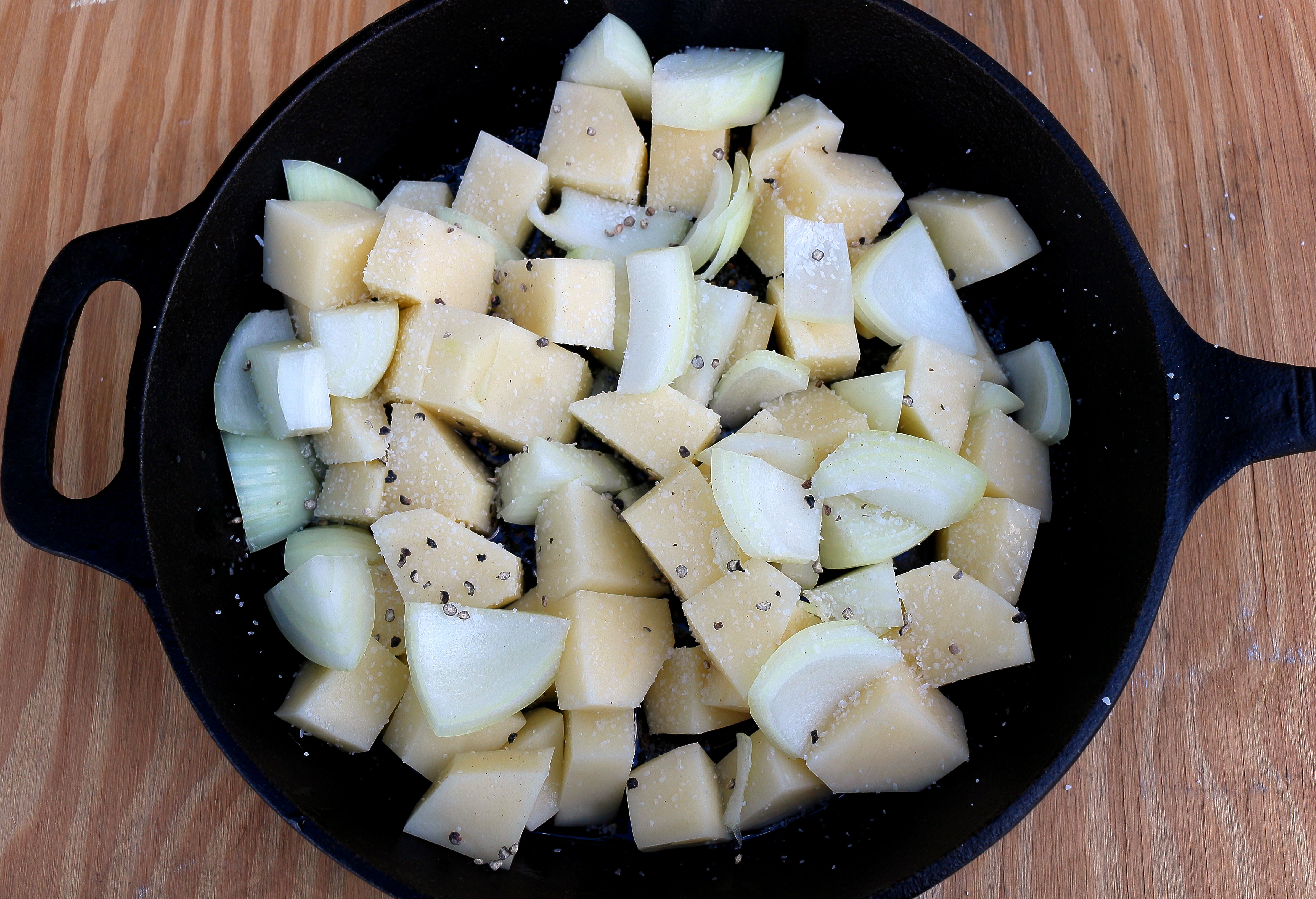Roast Cornish Hen With Caramelized Onions And Potatoes (Best Potatoes EVER?) ← Previous Next → coat the onions and potatoes in 2 tblsp duck fat, season with freshly cracked black pepper and kosher salt to taste