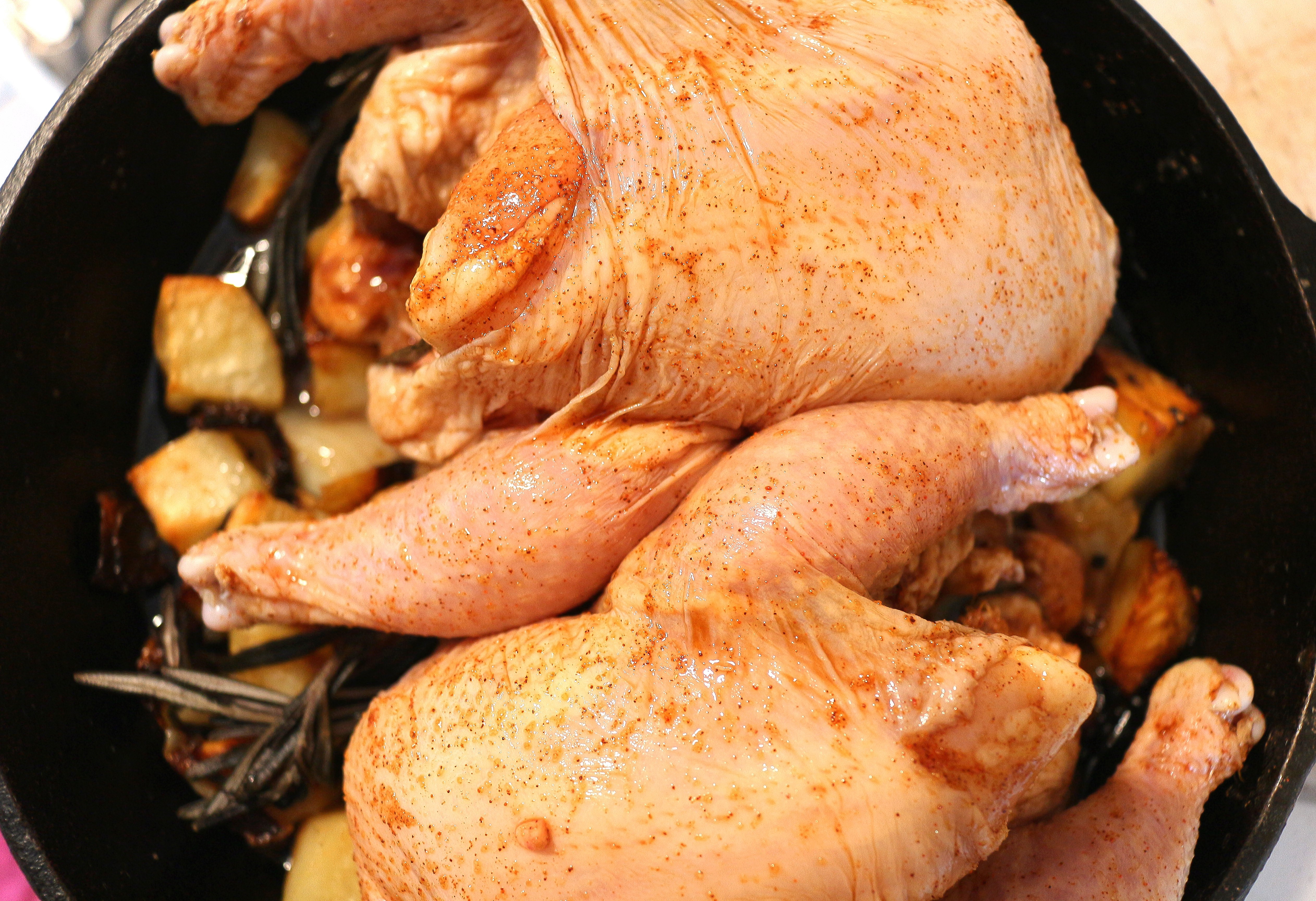 Roast Cornish Hen With Caramelized Onions And Potatoes (Best Potatoes EVER?) ← Previous Next → place the hen’s on top of the potatoes, roast (braise) the hen’s at 375F until cooked through but still jucy