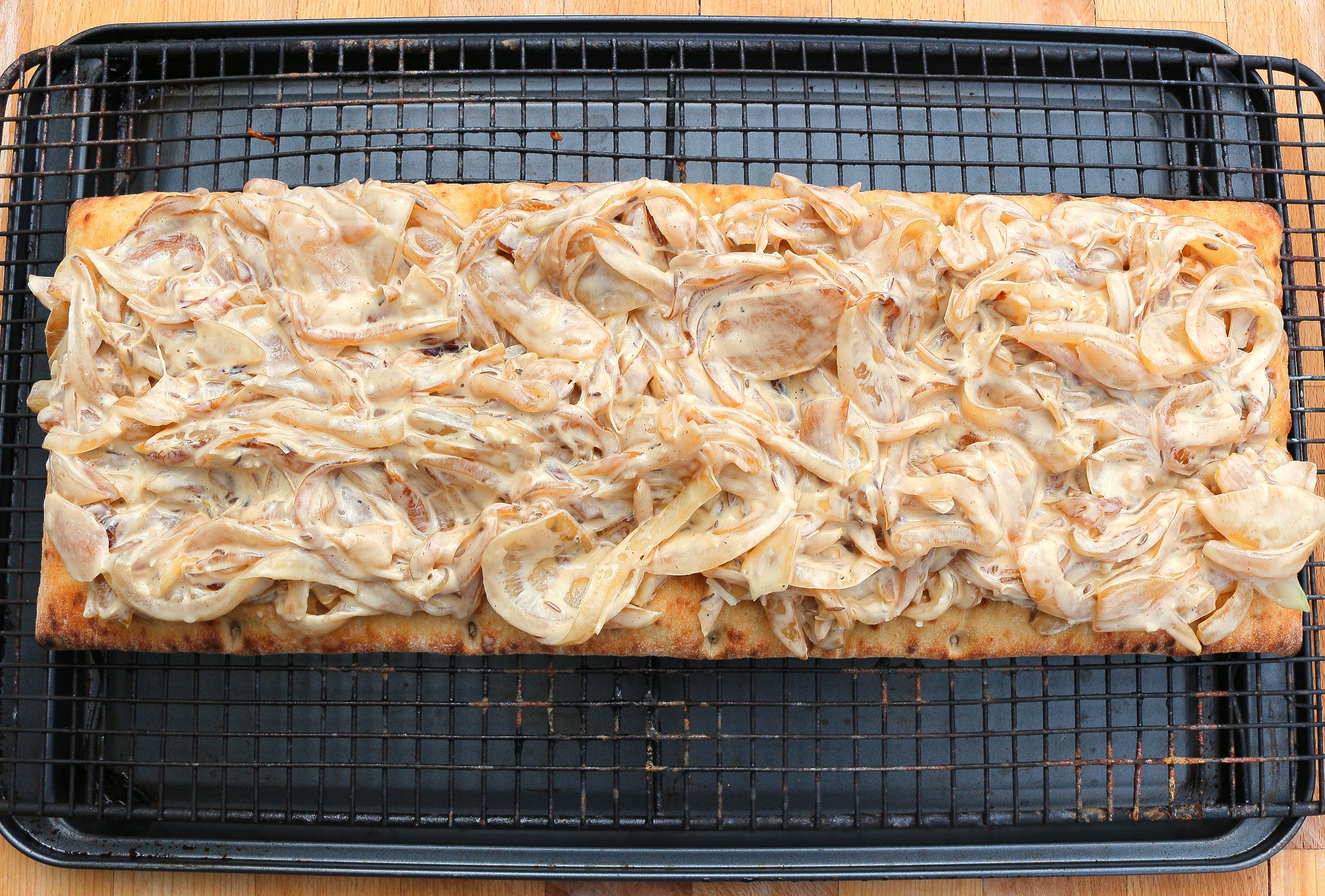 Schwäbischer Zwiebelkuchen (Swabian Onion Tart/Pie/Cake) ← Previous Next → spread the onion mixture evenly on top of the crust, drizzle lightly with melted butter