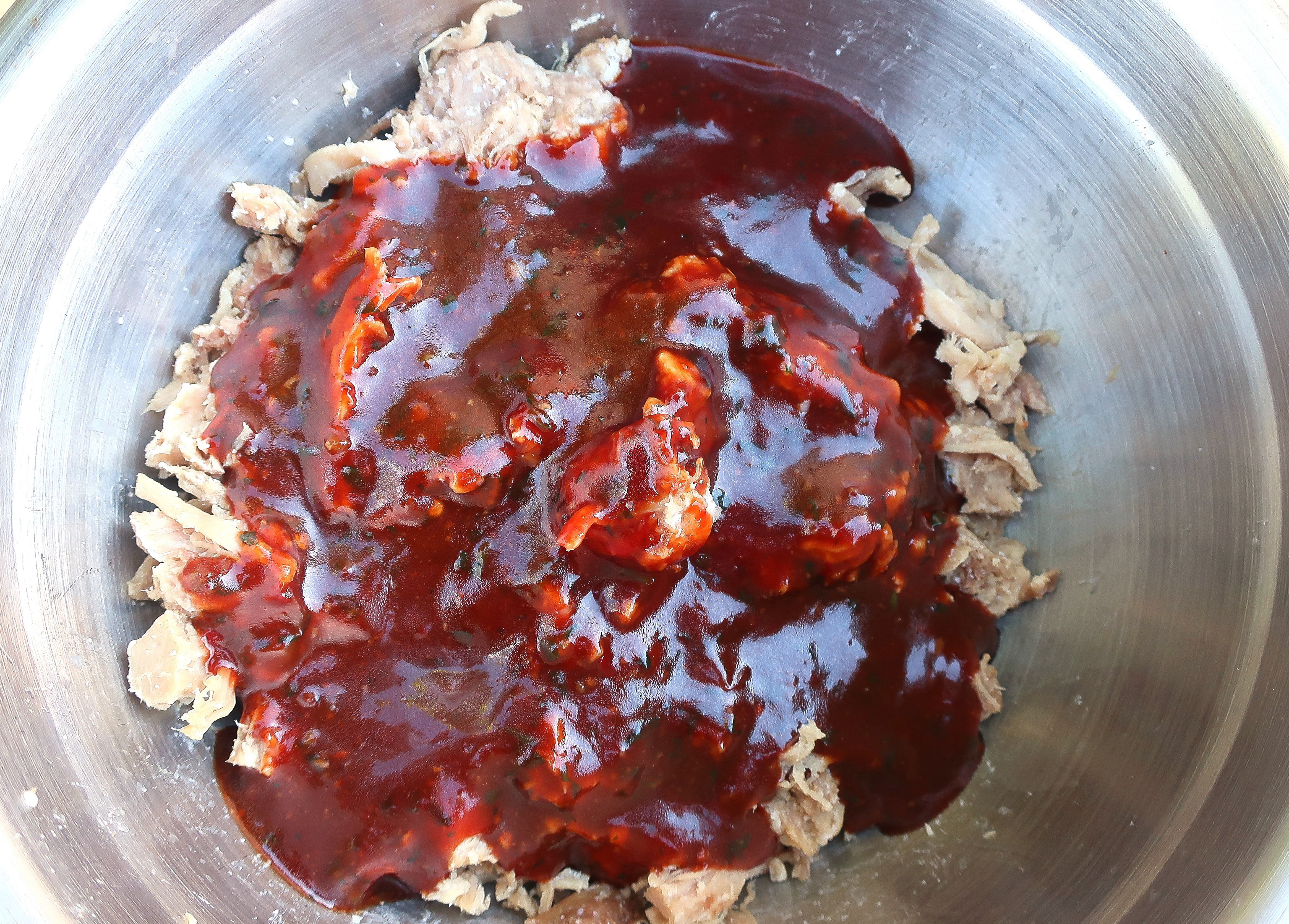 Pulled Hoisin-Pork Ciabatta Sandwich ← Previous Next → mix the BBQ hoisin sauce with the schredded meat and the chopped chicharrones