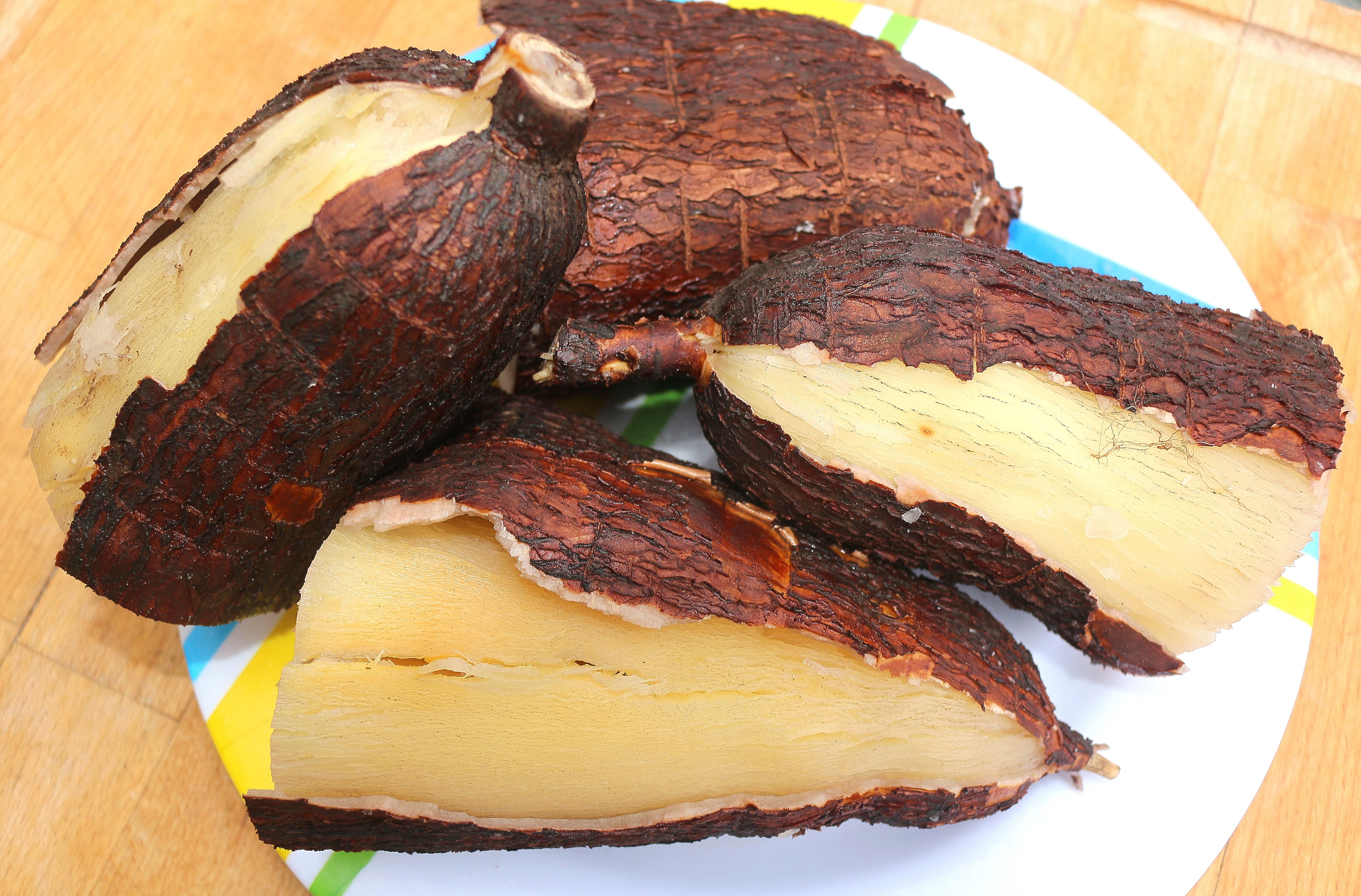 Plasas & Foo Foo (West African Chicken, Spinach, Tomato, and Peanut Sauce Stew With Cassava) ← Previous Next → remove from water, peel, remove the center string