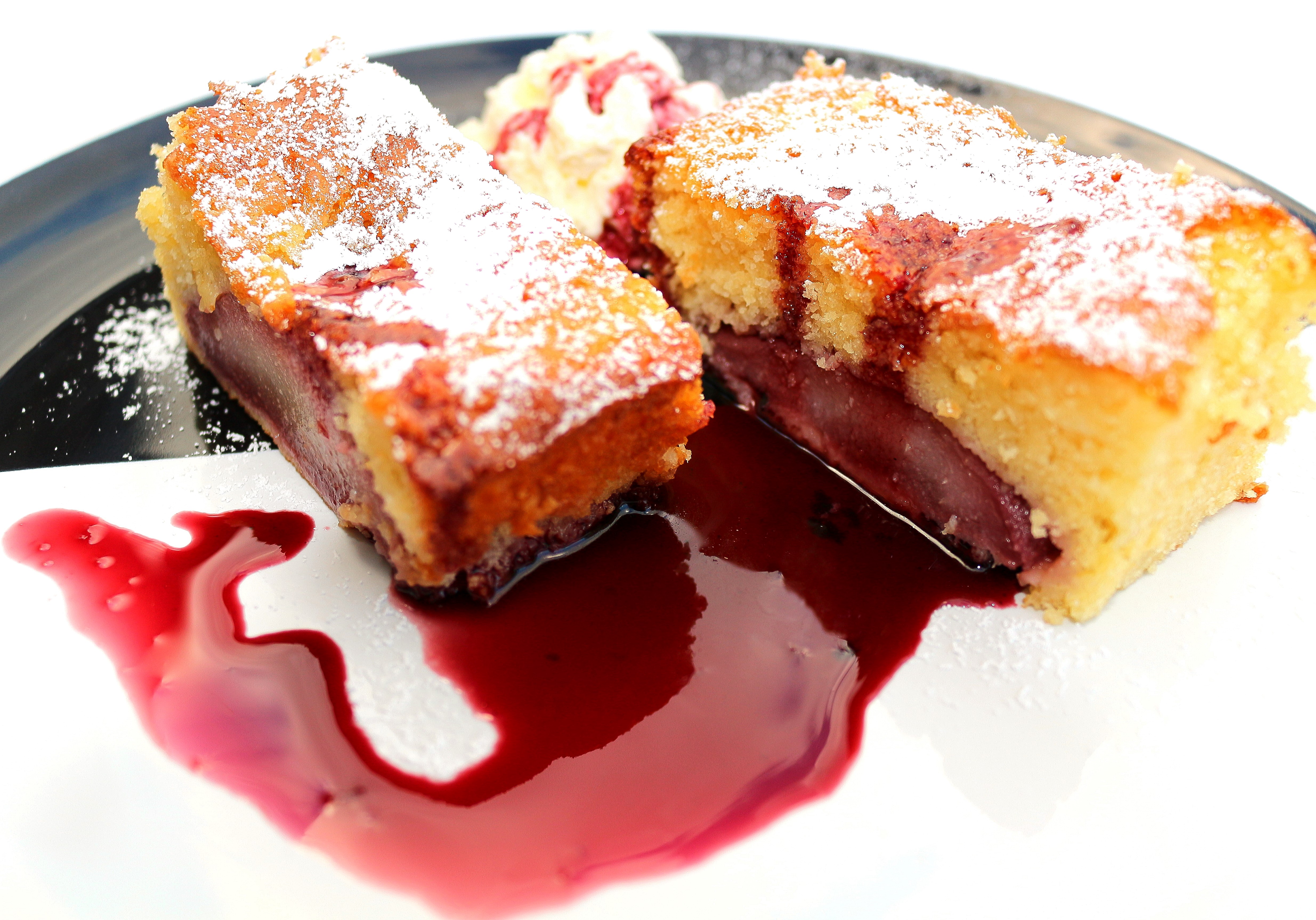 Vanilla Cake With Red Wine Poached Pears & Red Wine Reduction (2) ← Previous Next → Vanilla Cake With Red Wine Poached Pears & Red Wine Reduction