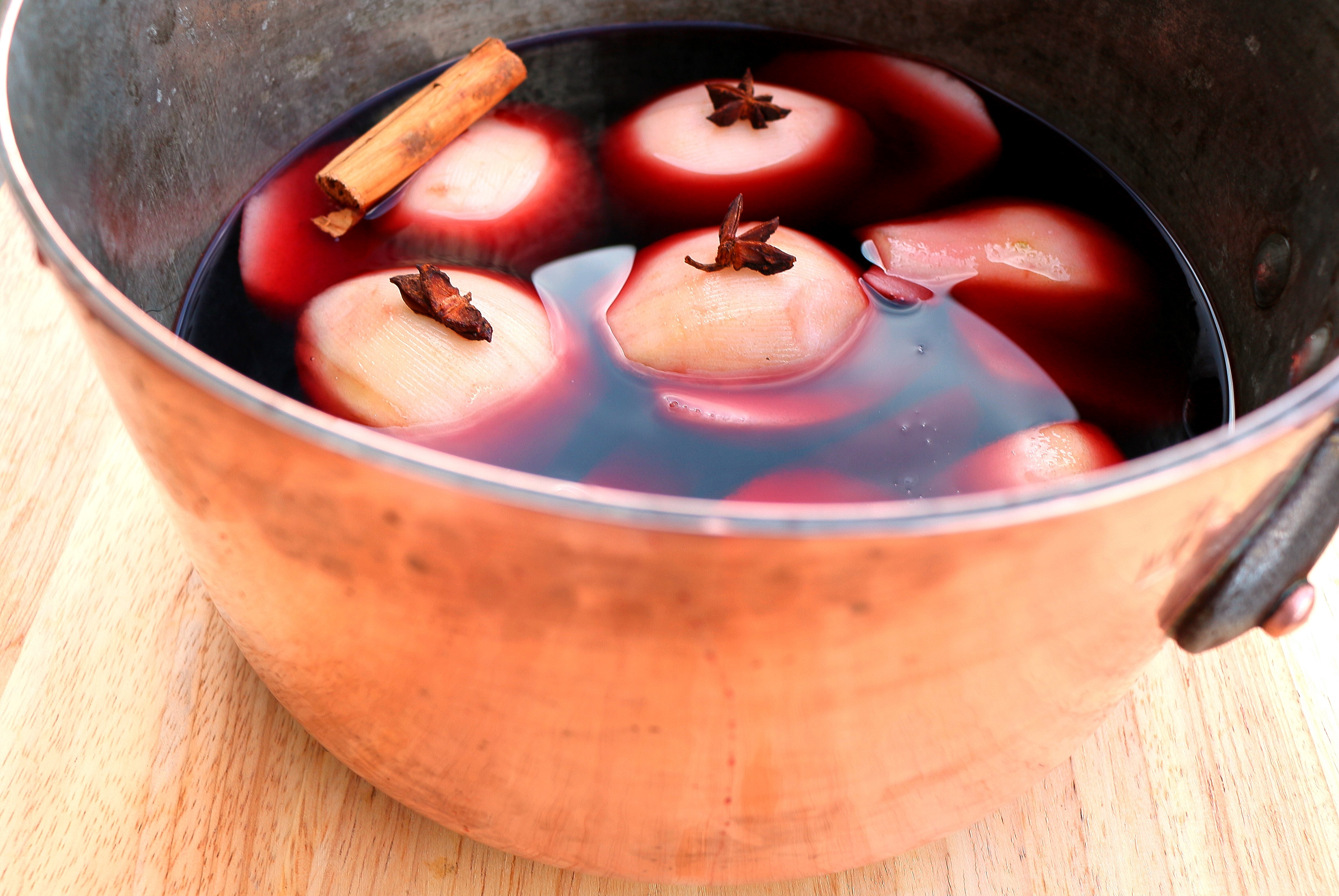Buttermilk Pancake With Merlot-Poached Pears And Merlot Cream ← Previous Next → poach the pears in 1 qt merlot, 2 ea whole cinnamon sticks, 3 ea star anis, 4 cloves and 1 cup sugar until cooked through but still firm, let cool in the wine