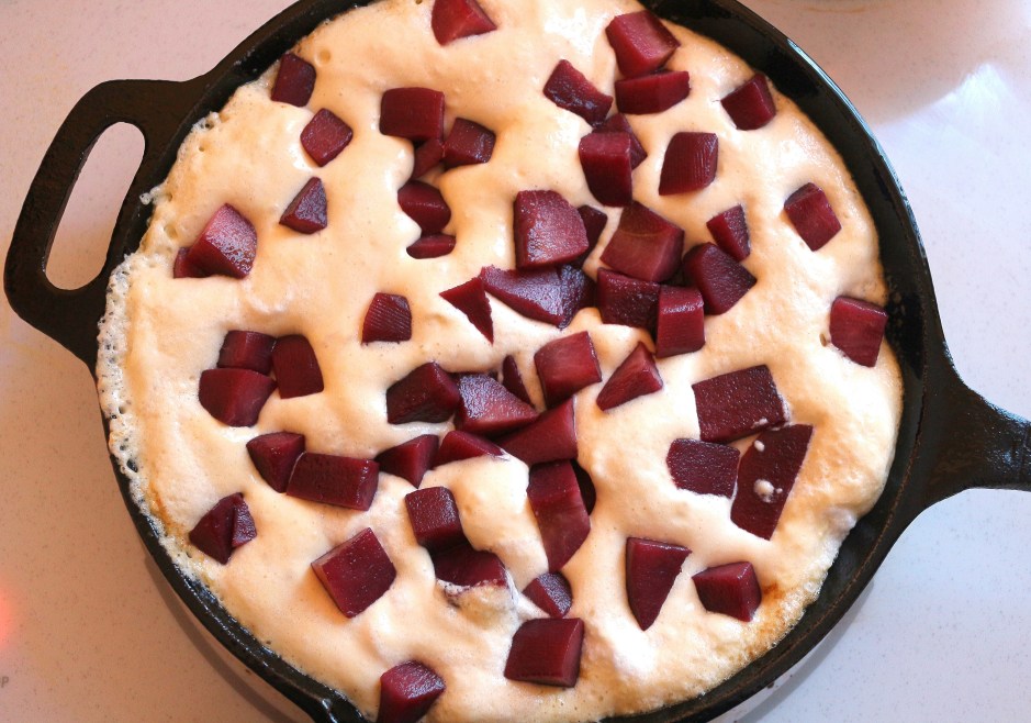 Buttermilk Pancake With Merlot-Poached Pears And Merlot Cream ← Previous Next → add the diced pears, return to the oven and bake until cooked through, about 15 minutes