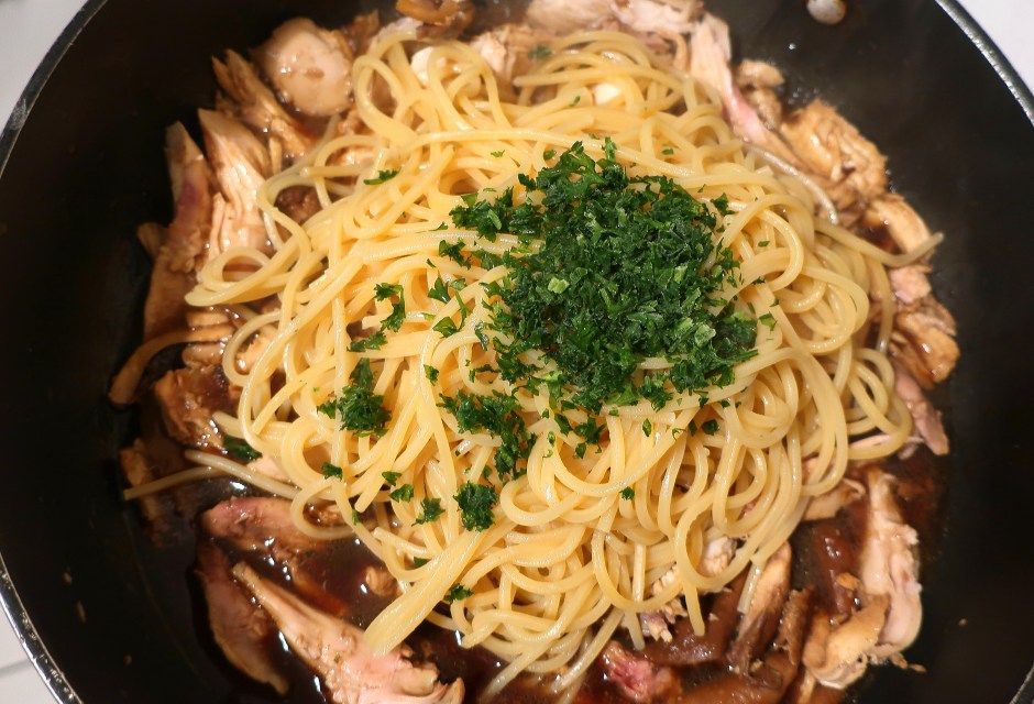 Leftover Soy Chicken ← Previous Next → add (4 0z raw) cooked pasta of your choice, add 1 tblsp chopped cilantro, mix well