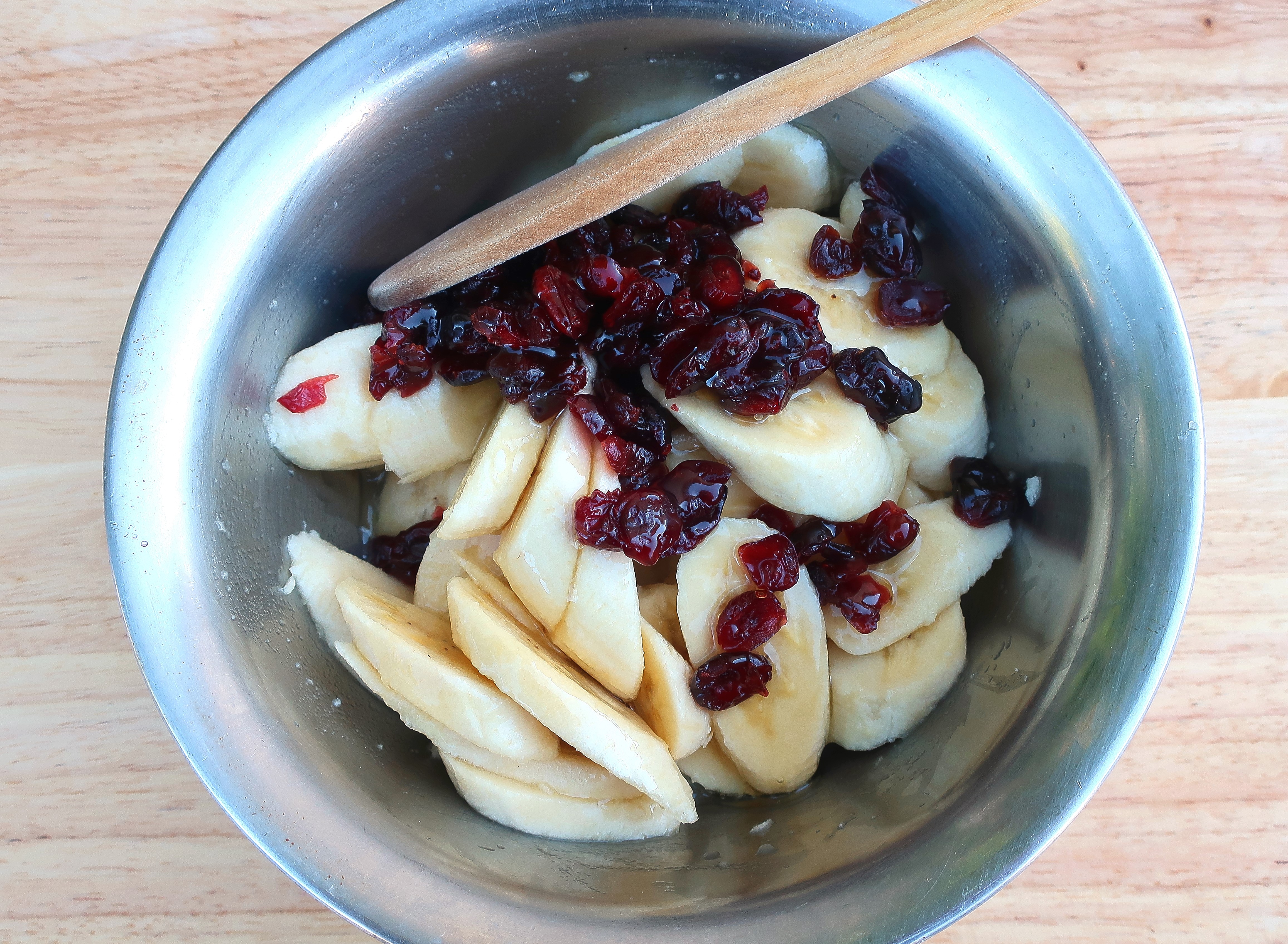 Banana And Cranberry Salad With Homemade Sugar-Free Banana Ice Cream ← Previous Next → add dried cranberries, add a splash of organic vanilla extract, organic honey and brown rum (optional – alcohol will convert to sugar ! ), mix, let macerate for 1 hour