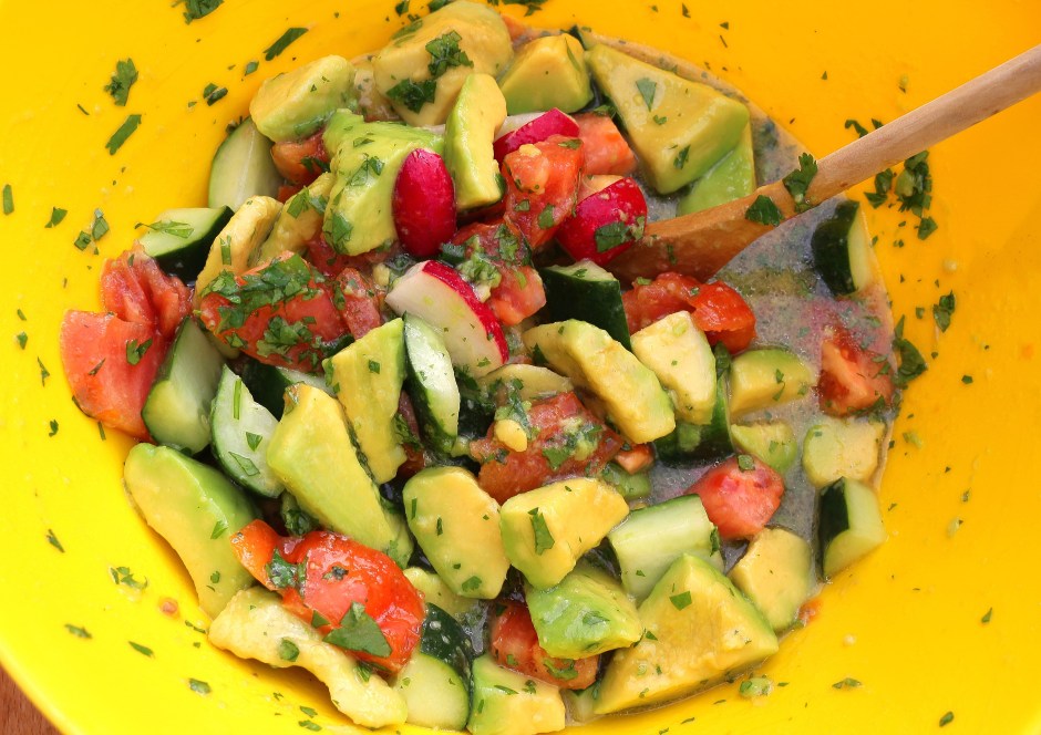 Torta De Milanesa De Res – A Dainty Sandwich ( NOT ! ) ← Previous Next → avocado, tomato, radish and cucumber salad
