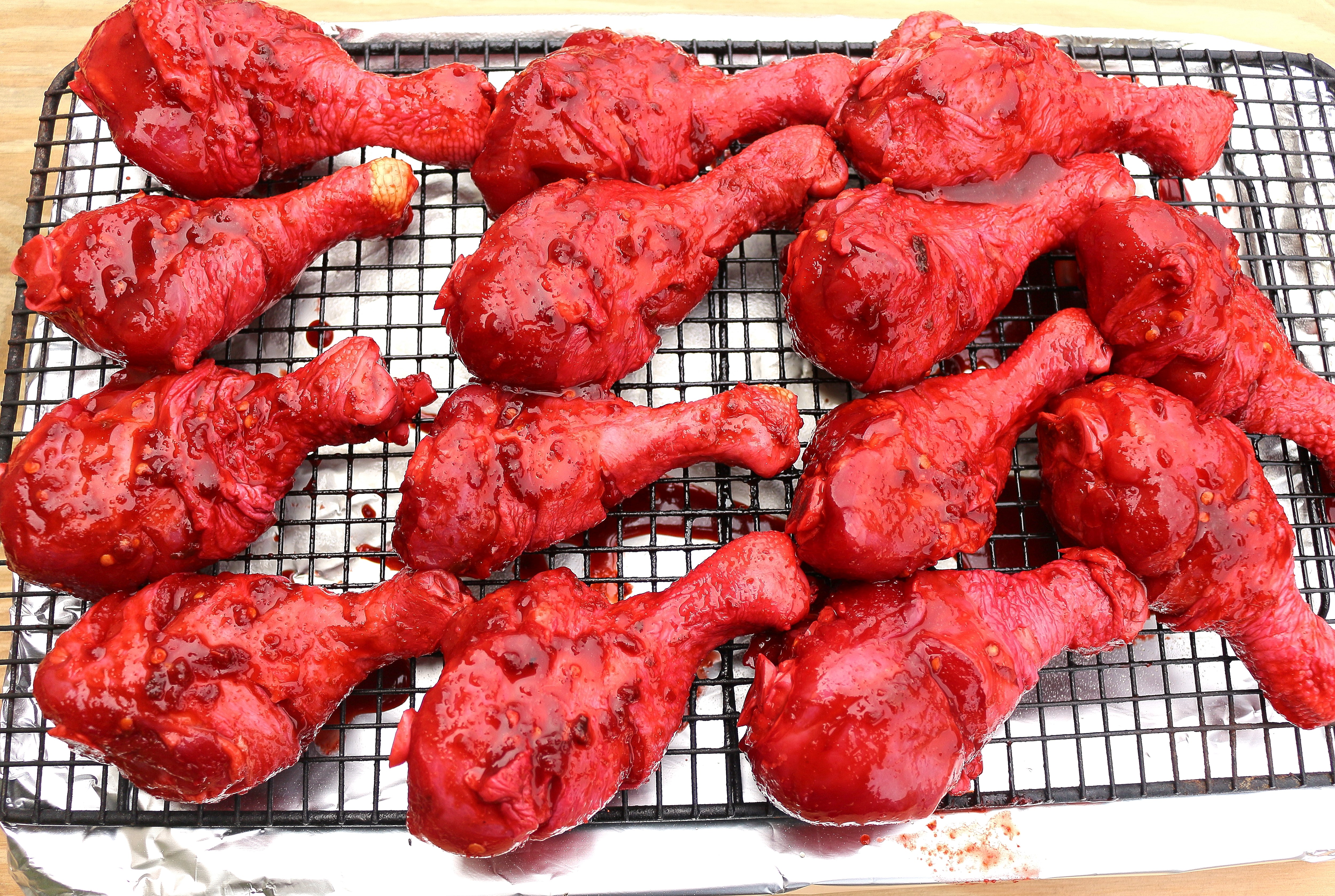 Salad Of Endive & Chili Chicken ← Previous Next → next day, place the drumsticks on a rack, roast at 385F until cooked through but still juicy, 30 to 40 minutes, depending on the size of the drumsticks