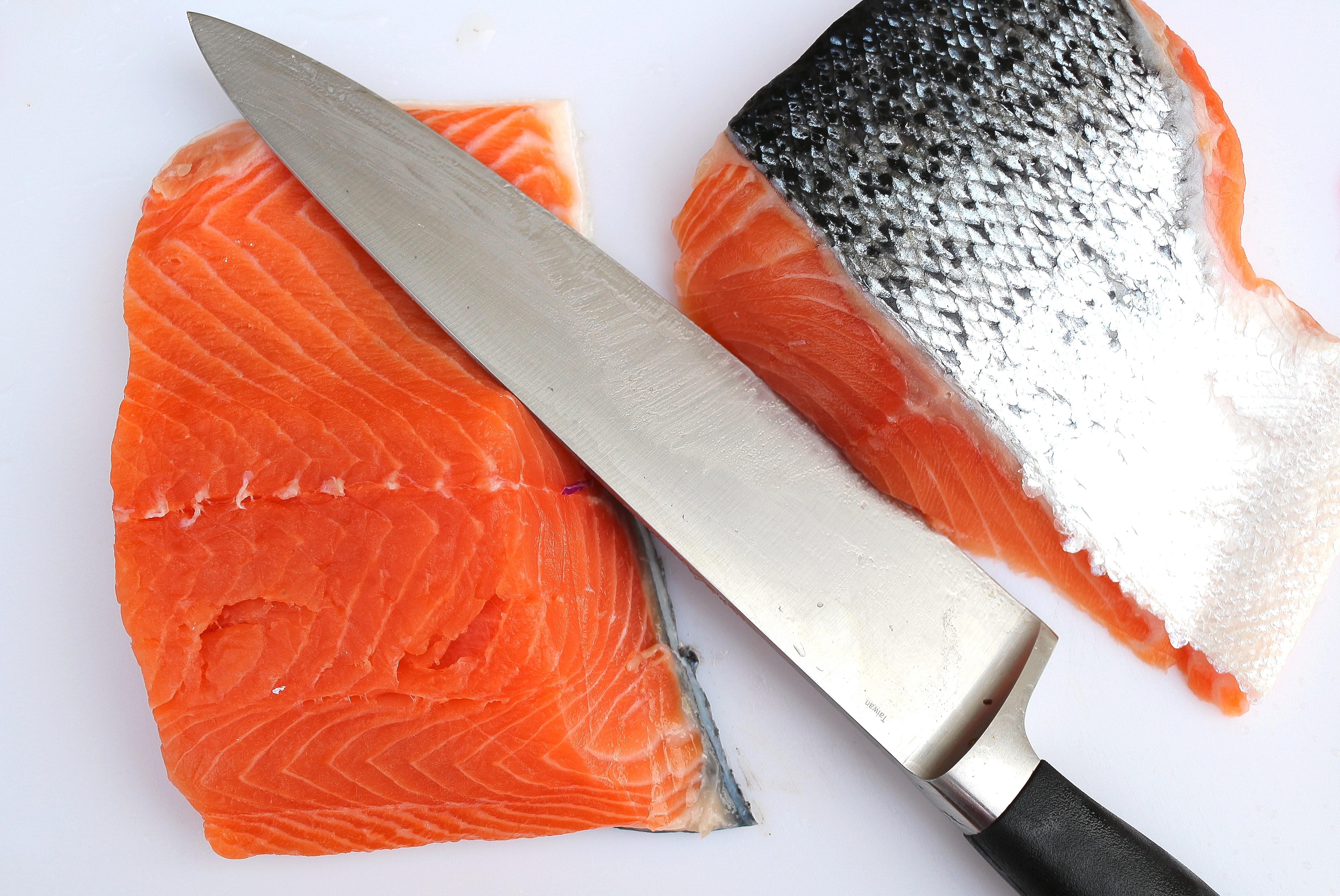 Sauteed Salmon With Arugula, Strawberries And Walnuts In Raspberry Vinaigrette Next → from a side of salmon, cut a 8 oz portion