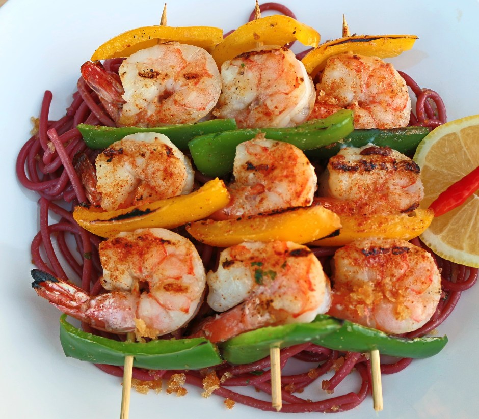 Grilled Shrimp And Peppers Brochette With Red Wine Bucatini And Pangrattato ← Previous Next → Grilled Shrimp And Peppers-Brochette With Red Wine-Bucatini And Pangrattato