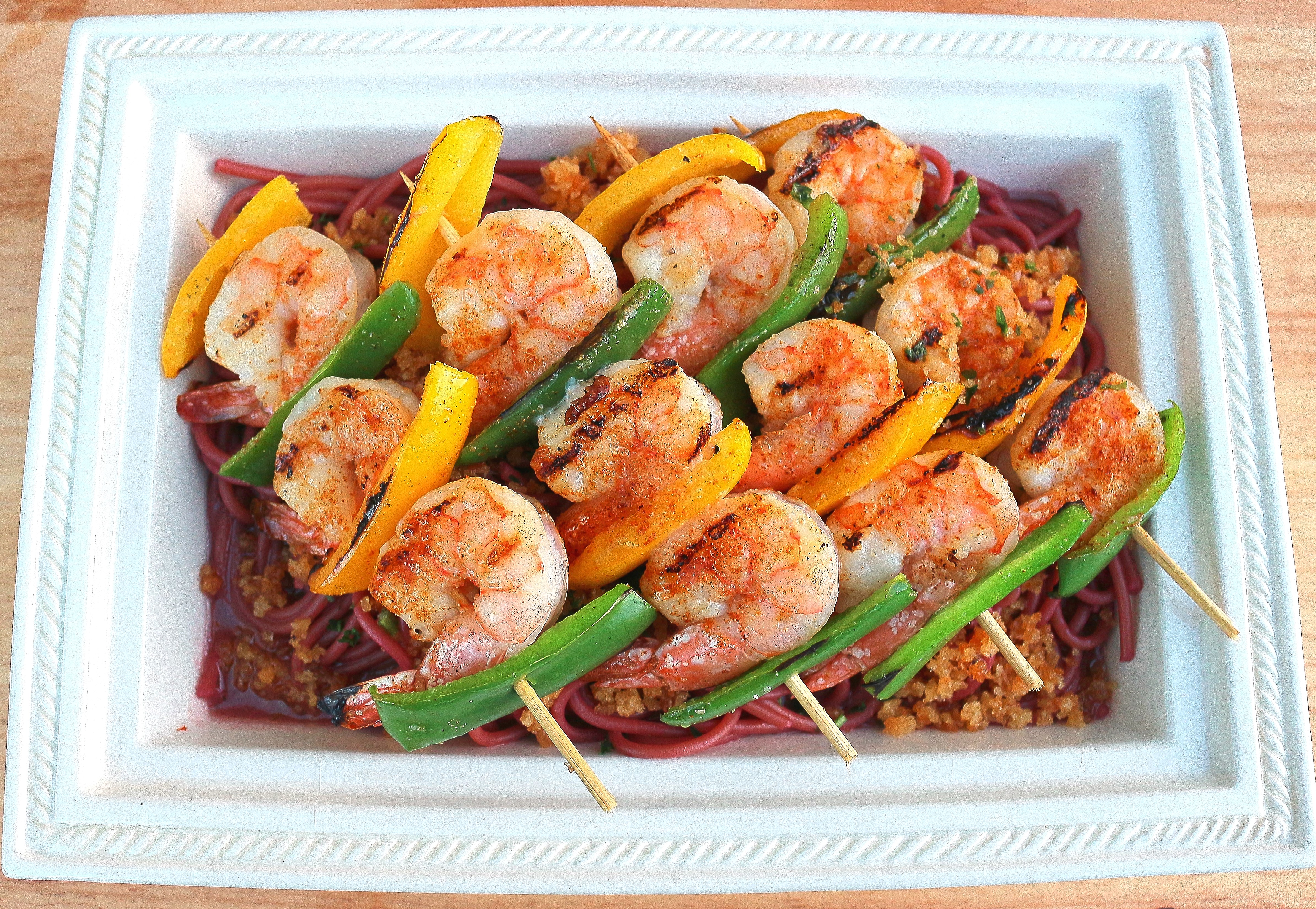 Grilled Shrimp And Peppers Brochette With Red Wine Bucatini And Pangrattato ← Previous Next → Grilled Shrimp And Peppers-Brochette With Red Wine-Bucatini And Pangrattato