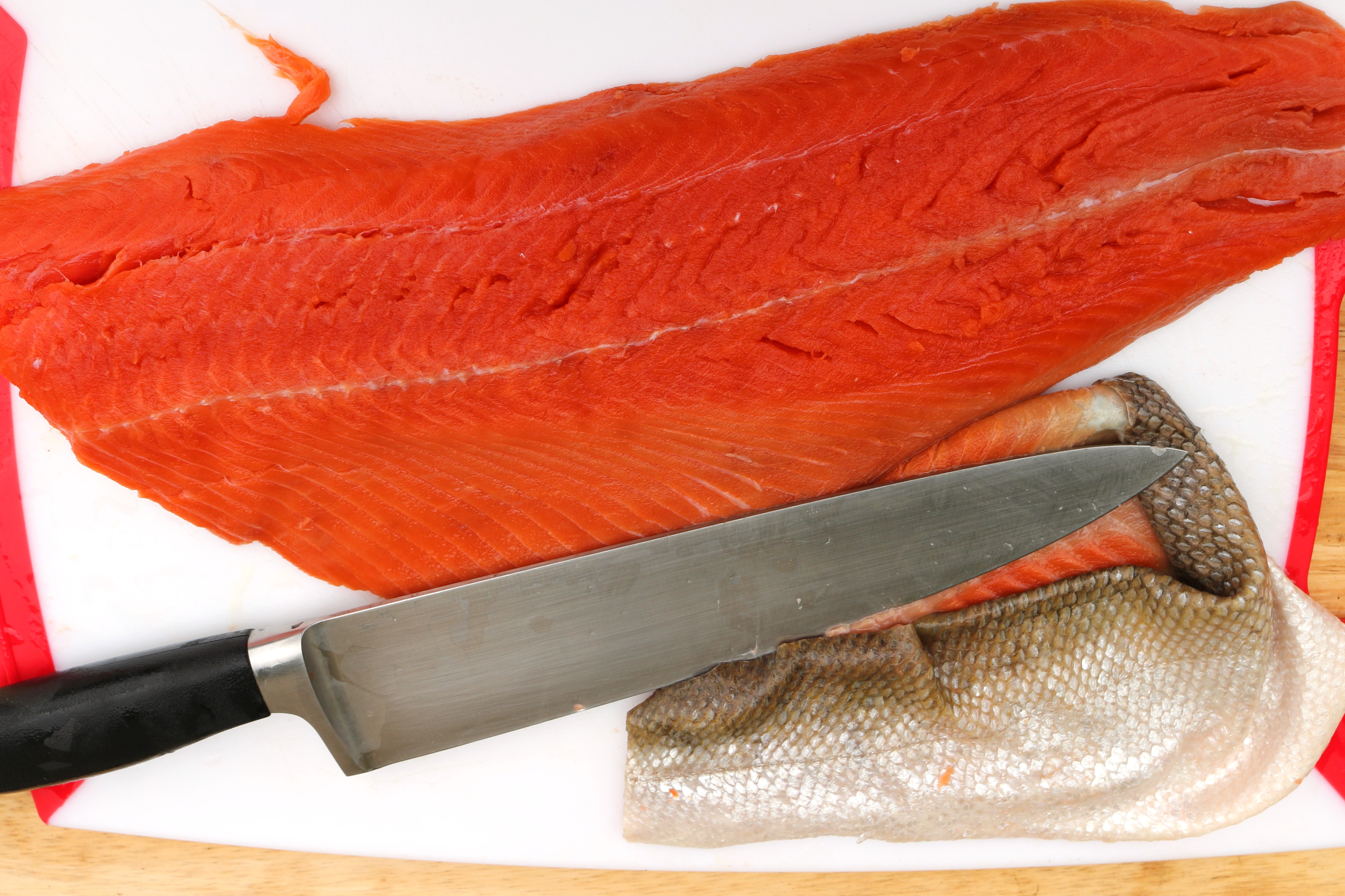 Baked Wild Sockeye Salmon With Baby Arugula Next → trim 1.5 lbs salmon filet, remove all pin bones with tweezers, remove skin