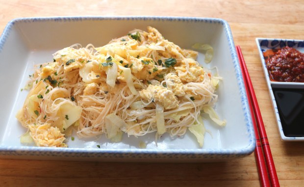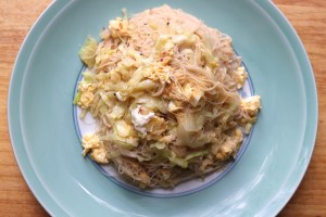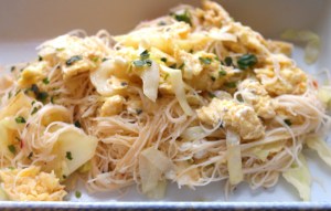Chinese Stir Fried Rice Sticks With Cabbage And Egg