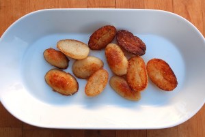 - saute the medaillons together with 16 ea small, blanched potatoes in EVO until the pork is cooked to your liking and the potatoes are golden and crisp