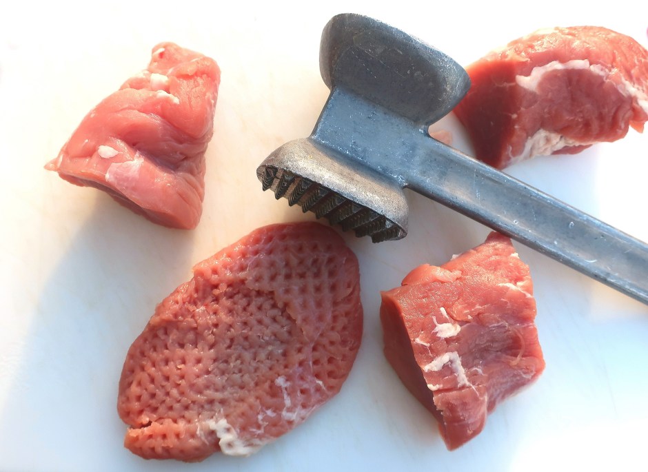 Parmesan Crusted Sauteed Pork Médaillons, With Potatoes, Bell Peppers And Crimini Next → cut the head and the tip off of 2 ea porktenderloin. (Reserve the heads and tips for another dish), flatten the remaining 4 pieces into madaillons