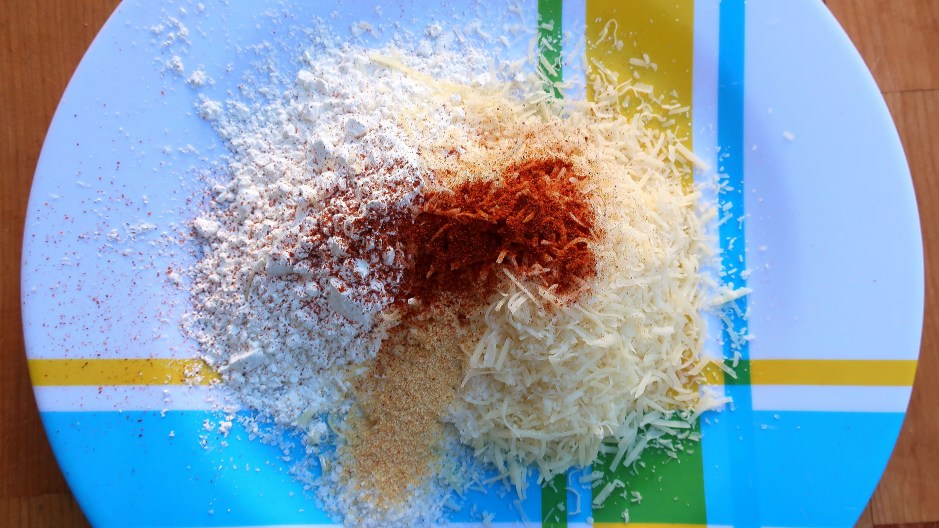 Parmesan Crusted Sauteed Pork Médaillons, With Potatoes, Bell Peppers And Crimini ← Previous Next → mix 1/2 cup shredded parmesan and 1/4 cup of corn starch, season with cayenne pepper and granulated garlic to taste