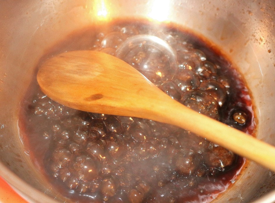 bring 1/3 cup of balsamic vinegar to a simmer