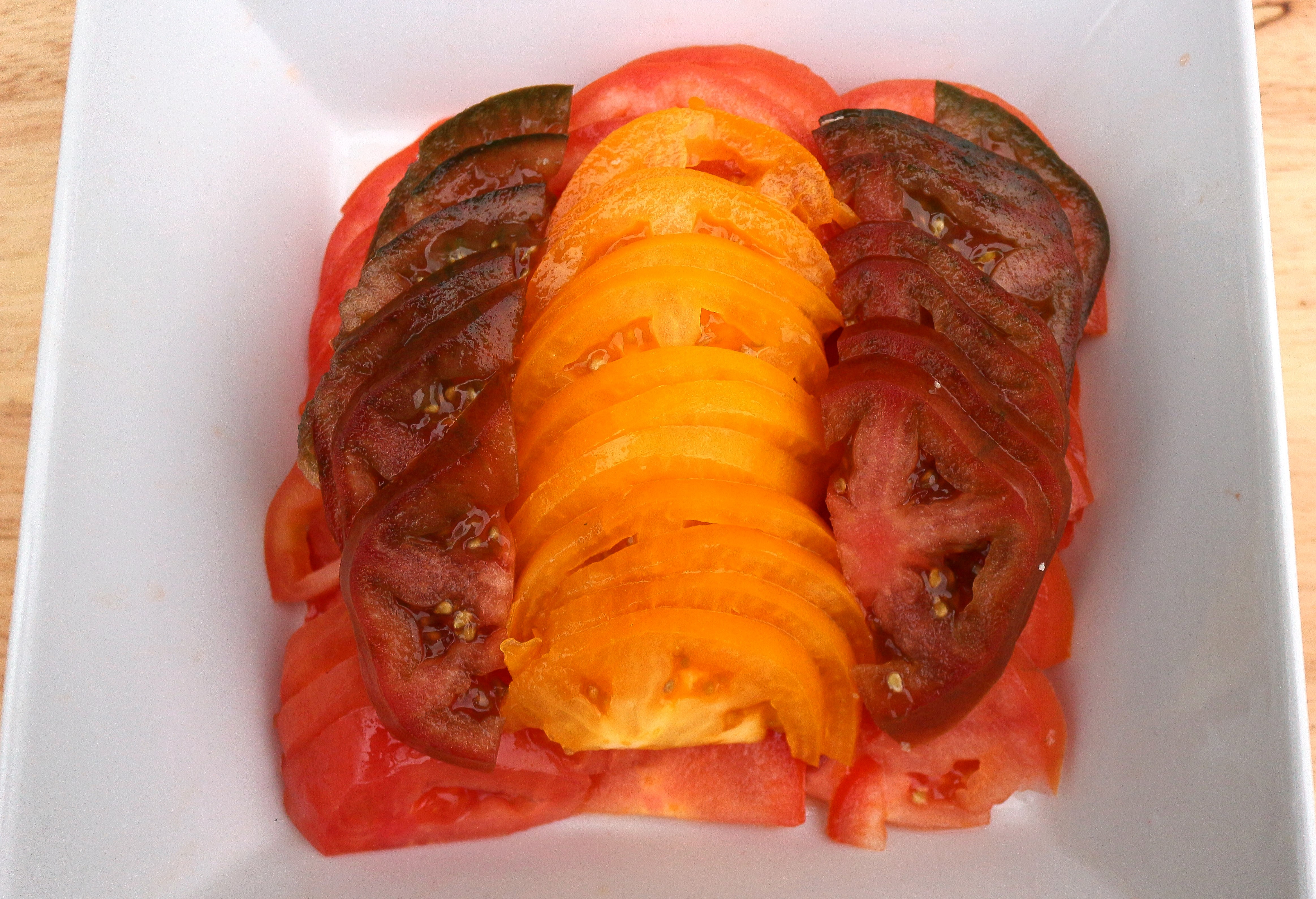 layer tomatoes in a bowl
