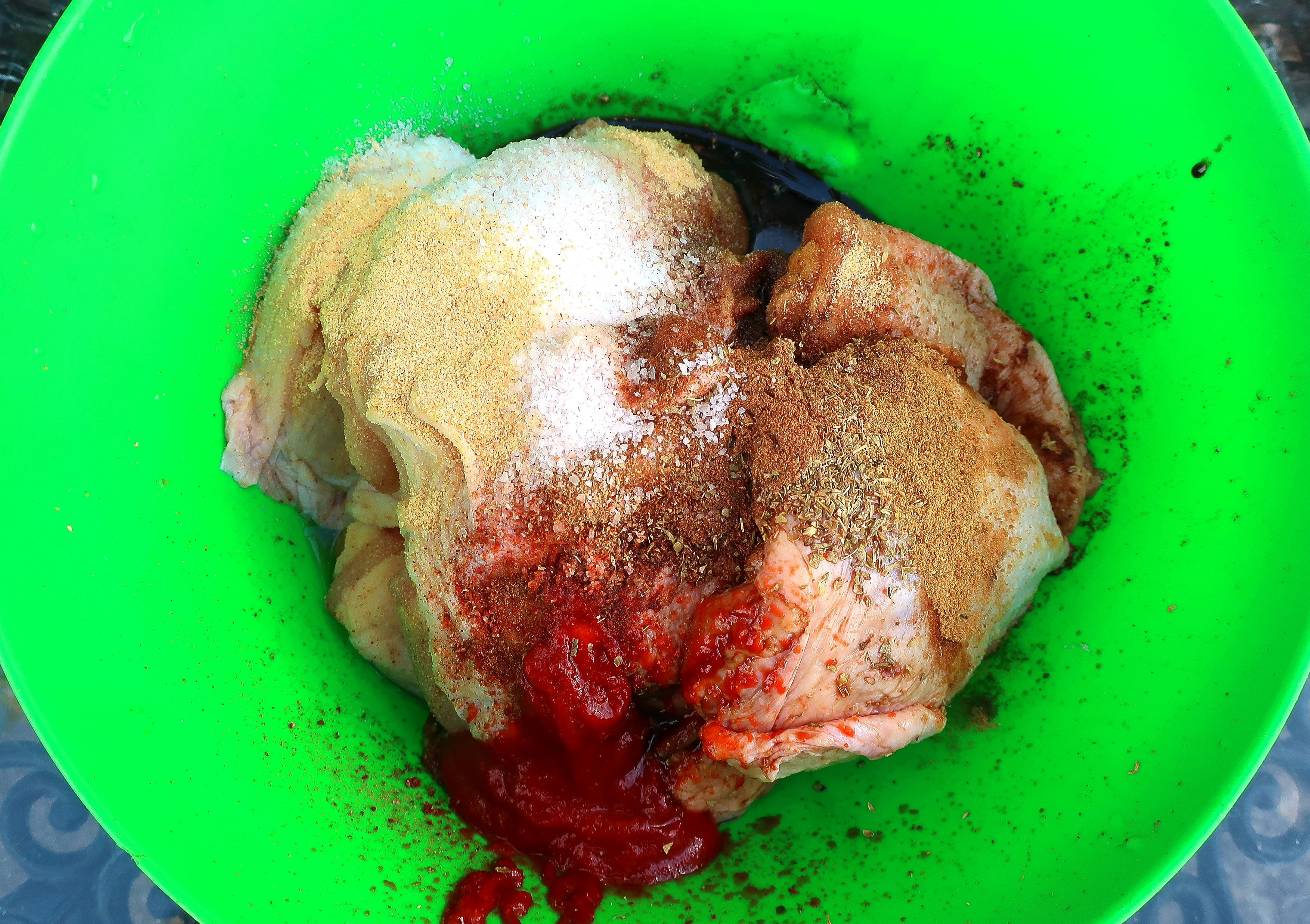 Sautéed Chicken Thighs ← Previous Next → Season Chicken with sriracha, granulated garlic, dried oregano, soy sauce and kosher salt for at least 6 hours, better yet overnight