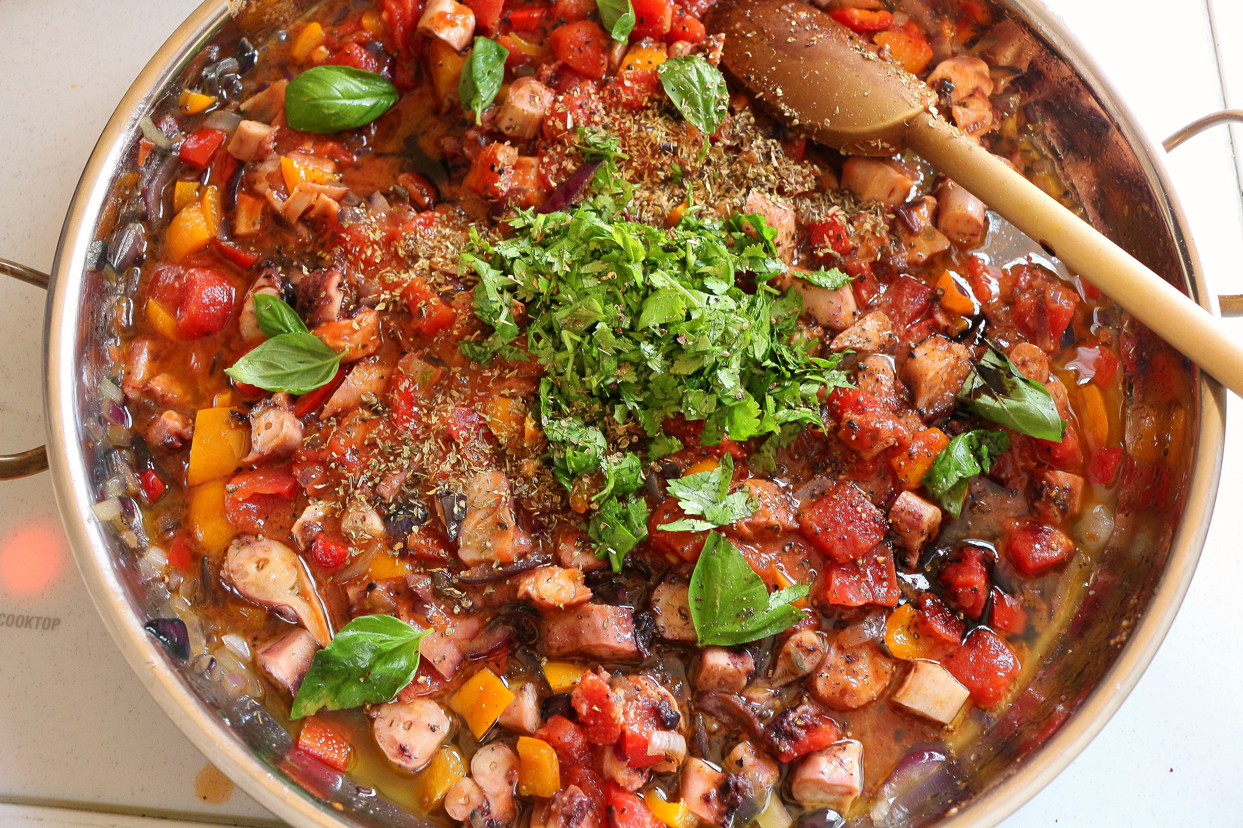 add 1/2 cup fresh basil, 1 cup chopped cilantro and 1 tblsp dried oregano