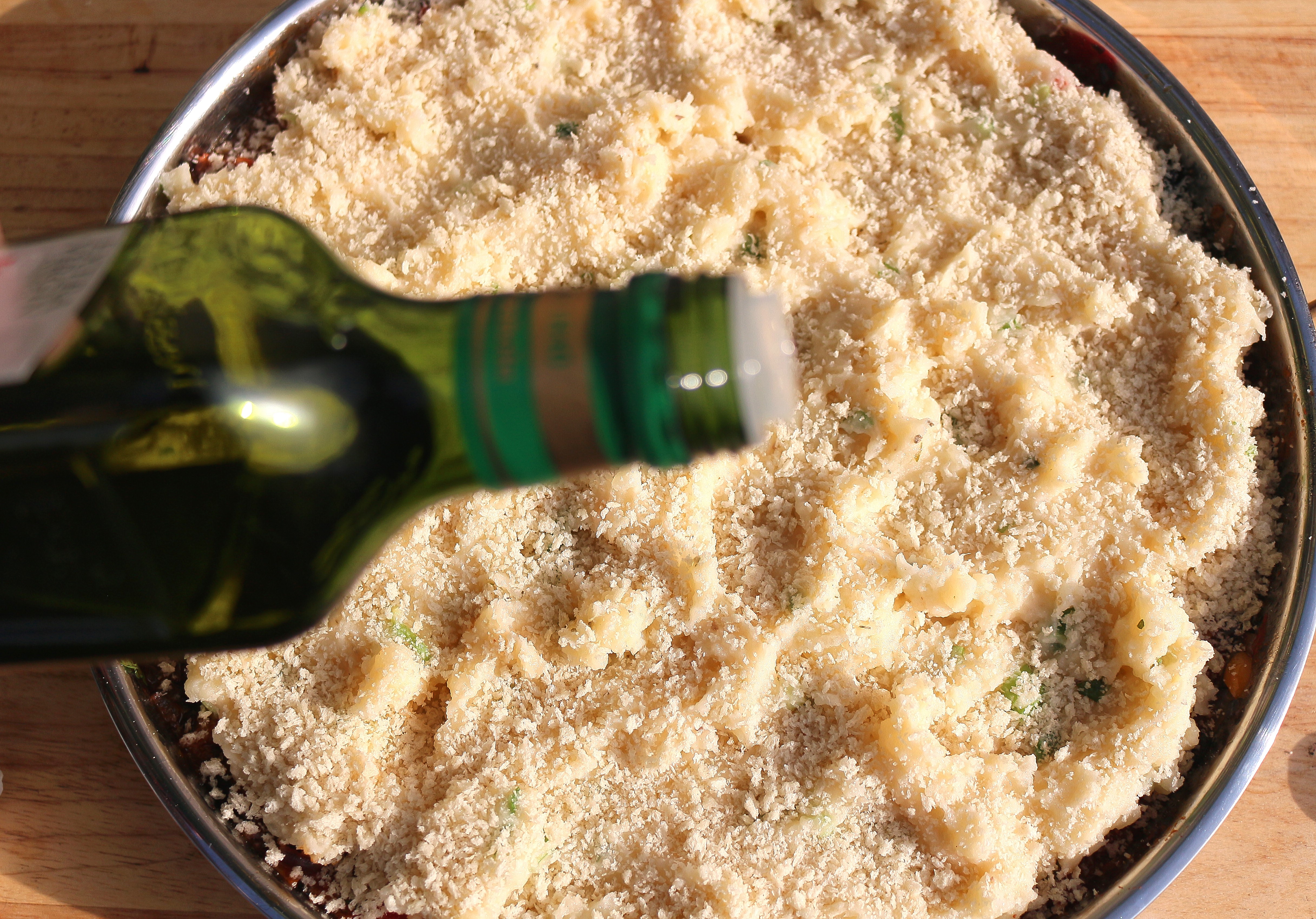 sprinkle with panko crumbs, drizzle generously with EVO