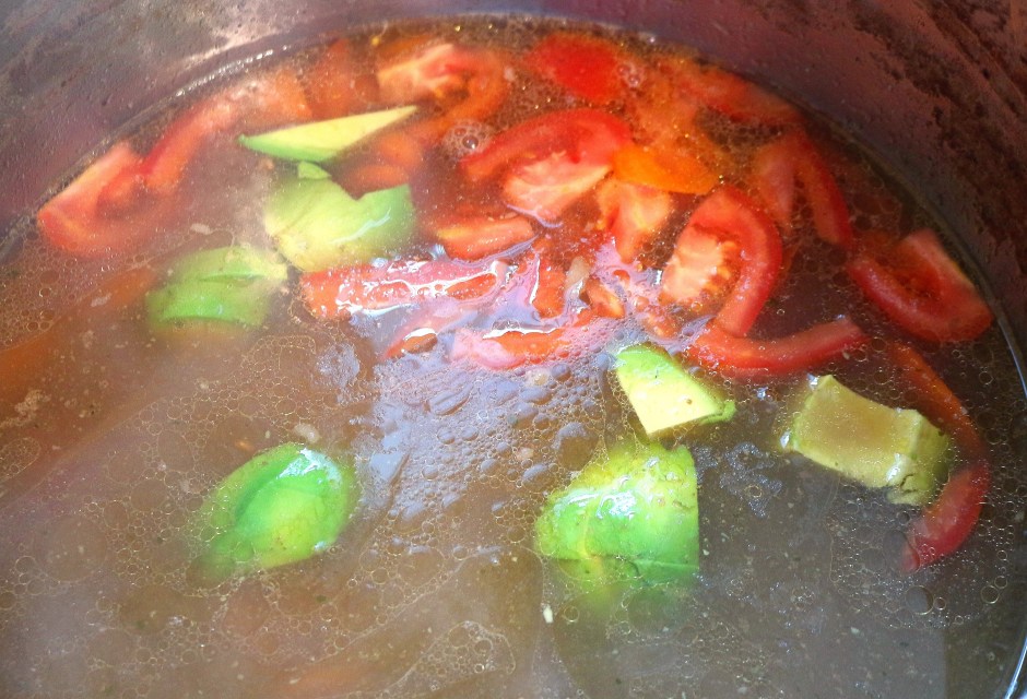 Beef Neck And Vegetables Soup ← Previous Next → add 4 small sliced carrots, simmer until the carrots are soft, add 1 ea diced avocado and 1 ea diced tomato to the soup, simmer for 1 minute, remove from heat, season with cayenne pepper and grated nutmeg to taste; check/adjust seasoning