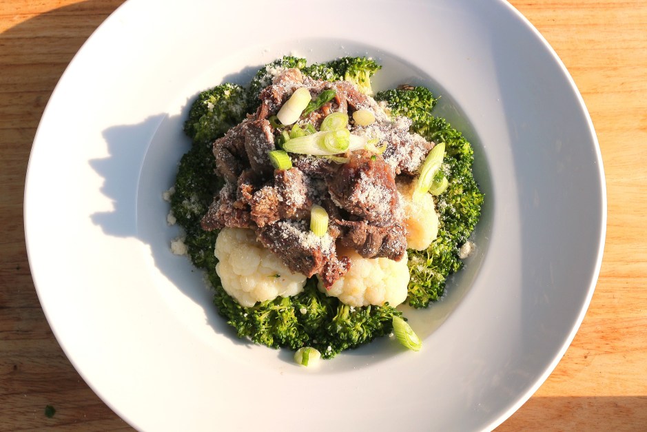 Beef Neck And Vegetables Soup ← Previous Next → top with 1/4 of the meat, sprinkle with sliced scallions and grated parmesan (optional), place the plate with in a 200F degree oven to warm everything through (or use Microwave); to serve, add the piping hot soup; serves 4