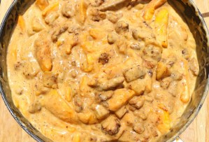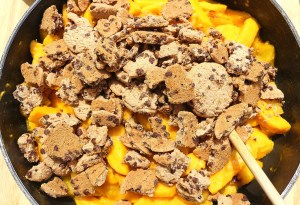 - add the mangoes and 1/3 cup cornstarch, mix well but carefully so as not to mash-up the fruit