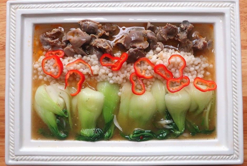 Pasta Pearls, Bok Choy, Mollejas And Chillies In Ginger/Tamarind Broth ← Previous Next → Pasta Pearls, Bok Choy, Mollejas And Chillies In Ginger/Tamarind Broth