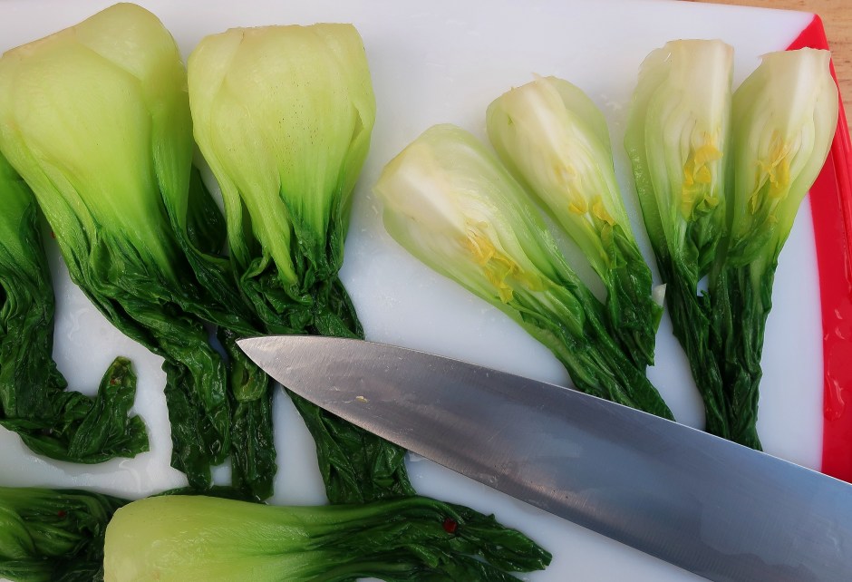 Pasta Pearls, Bok Choy, Mollejas And Chillies In GingerTamarind Broth ← Previous Next → cut bok choy lengthwise into quarters